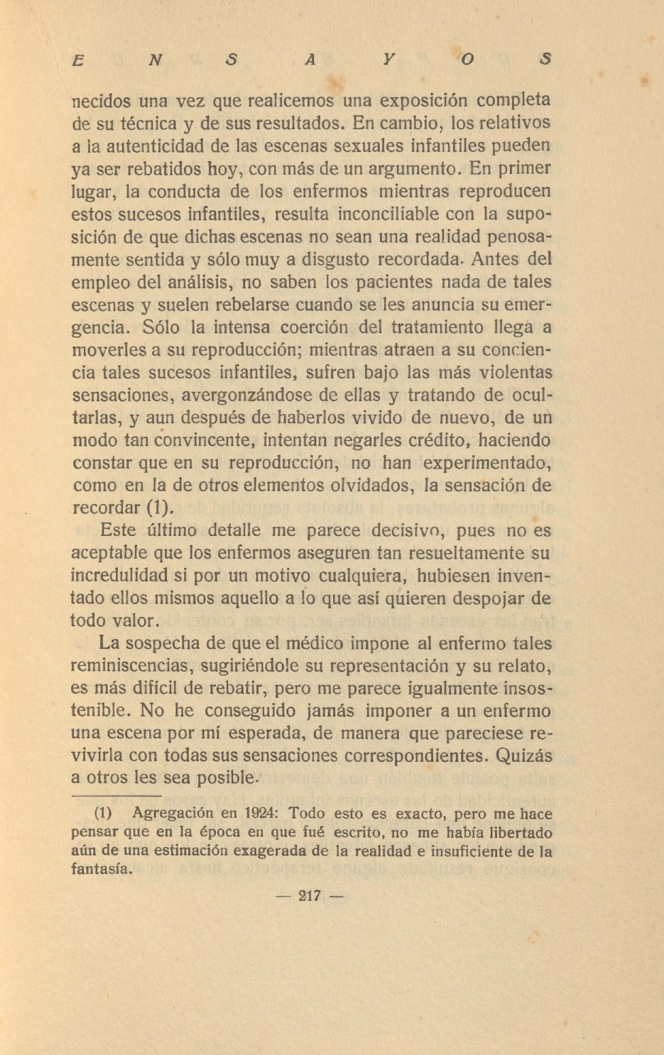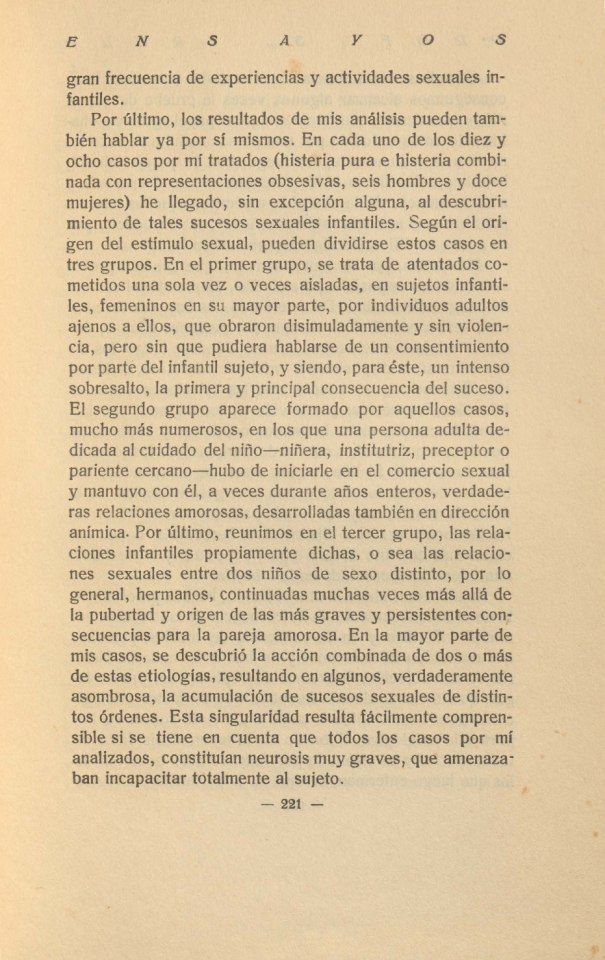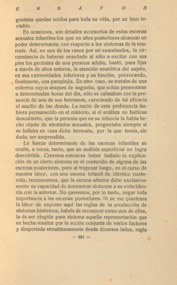 los sucesos sexuales infantiles no aparece limitada al terre-