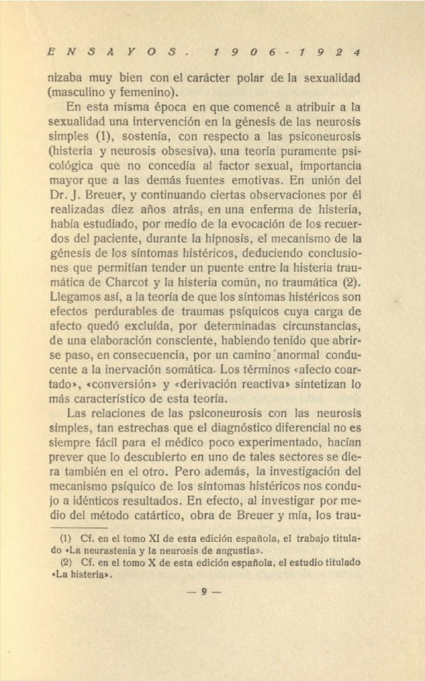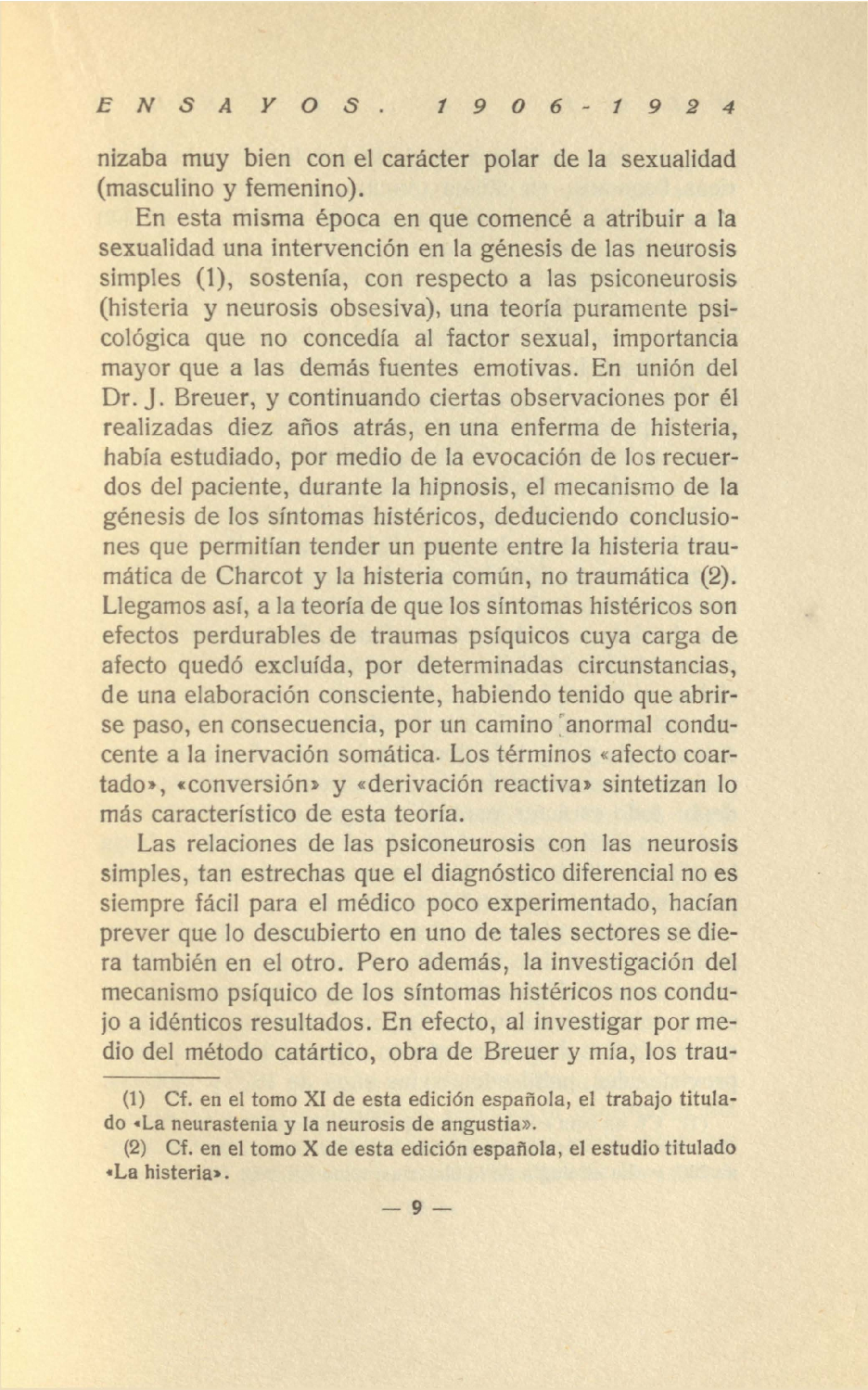 dio del método catártico, obra de Breuer y mía, los trau-(1) Cf. en el tomo XI de esta edición española, el trabajo titula-