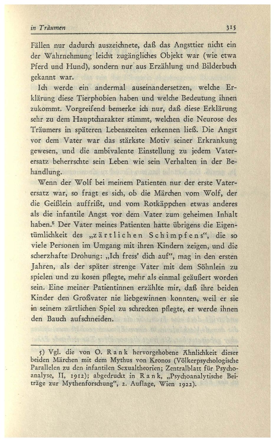 einer richtigen Tierphobie, die sich von anderen ähnlichen4) Siehe „Aus der Geschichte einer infantilen Neurose“ in