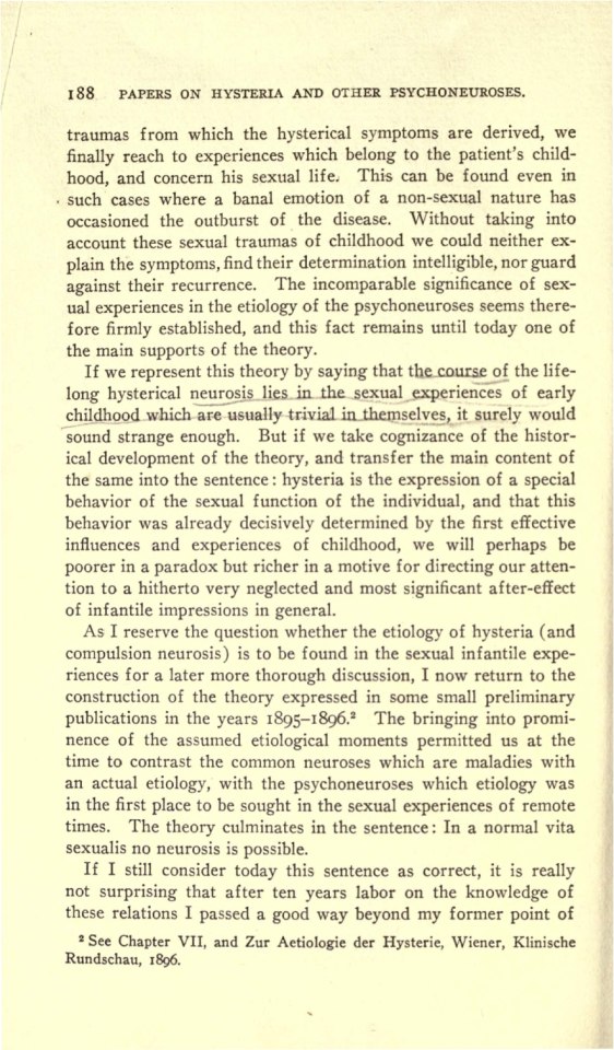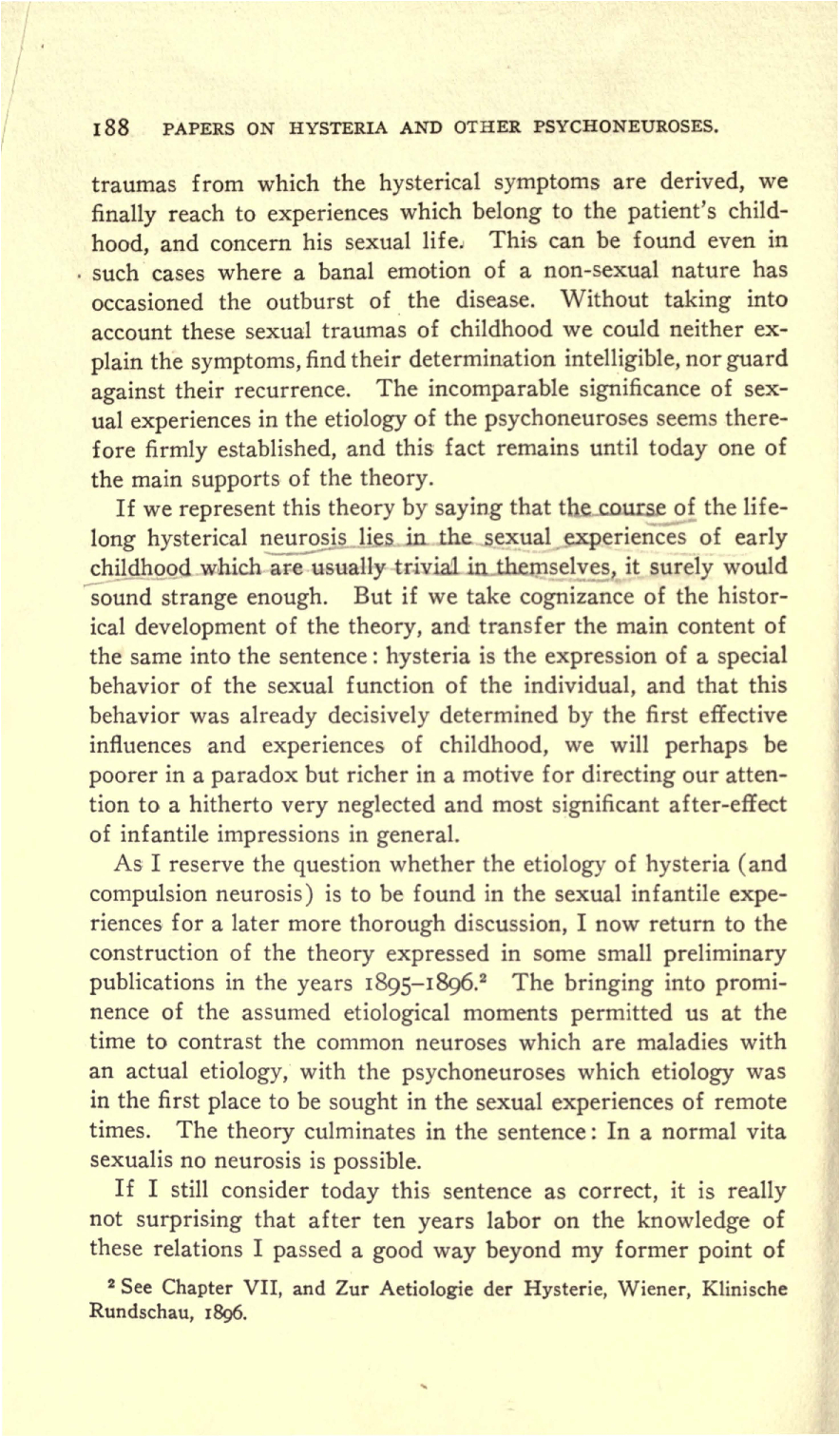 of infantile impressions in general.As I reserve the question whether the etiology of hysteria (and