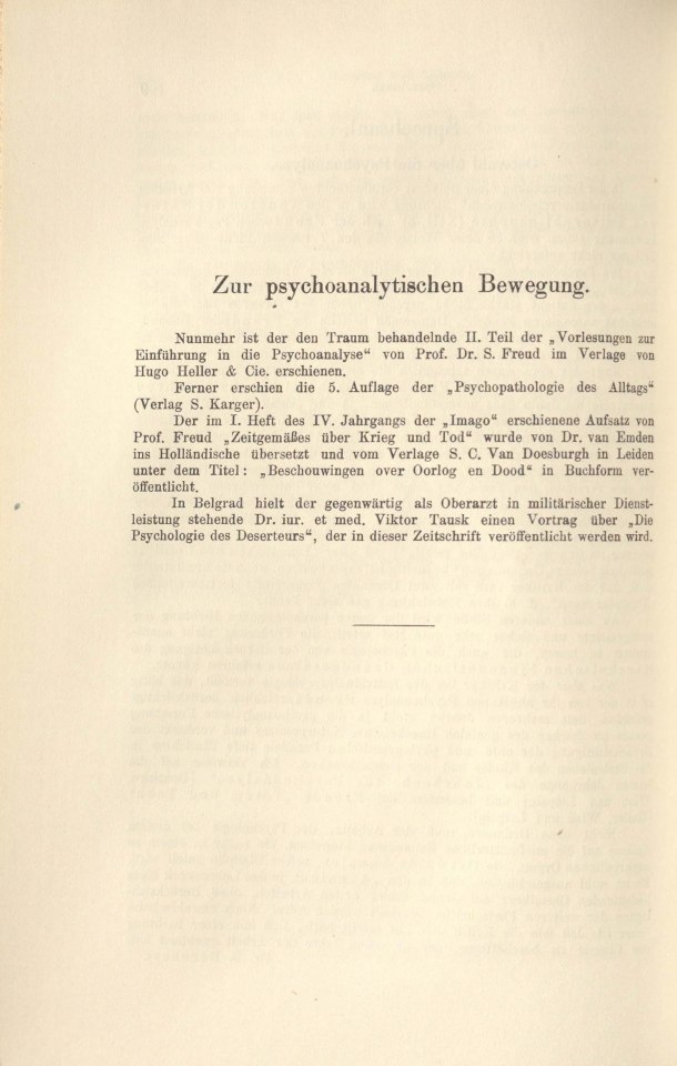 N. N. 1917-761/1917 Zur psychoanalytischen Bewegung [Januar 1917] Z 4, 1917, 3 170 Fertig Fertig Ganz fertig / zutreffend Fehlt Fehlt Teilweise -
