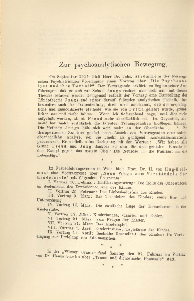 Zur psychoanalytischen Bewegung [Mai 1916]