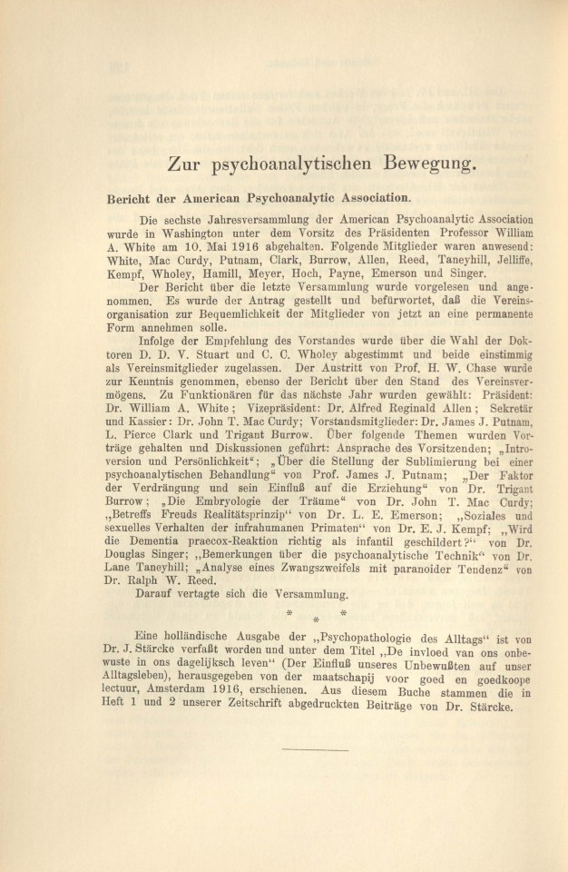 Zur psychoanalytischen Bewegung [Oktober 1916]