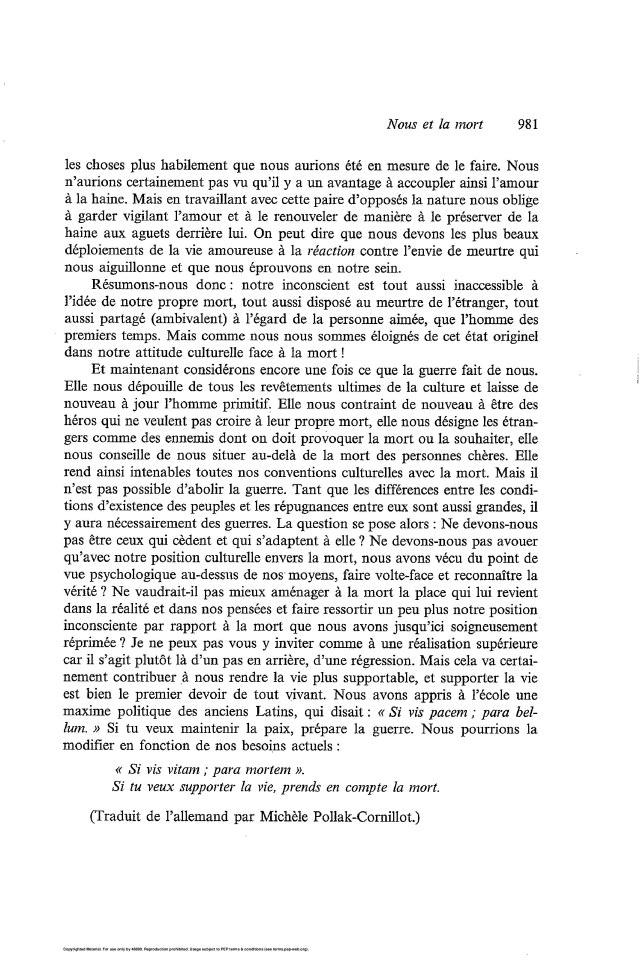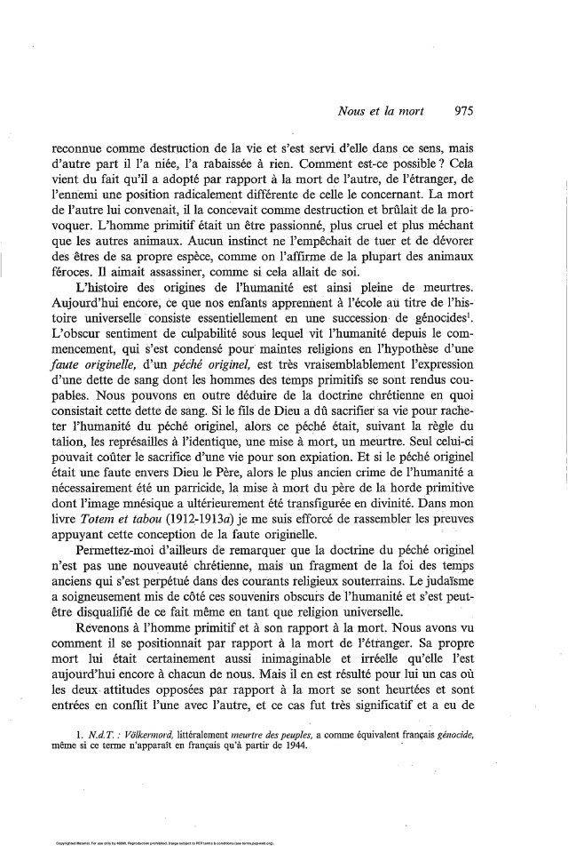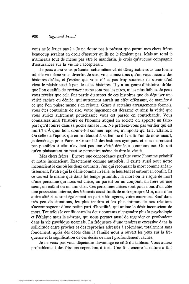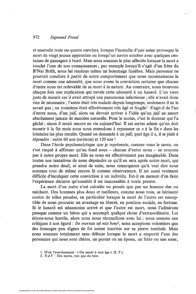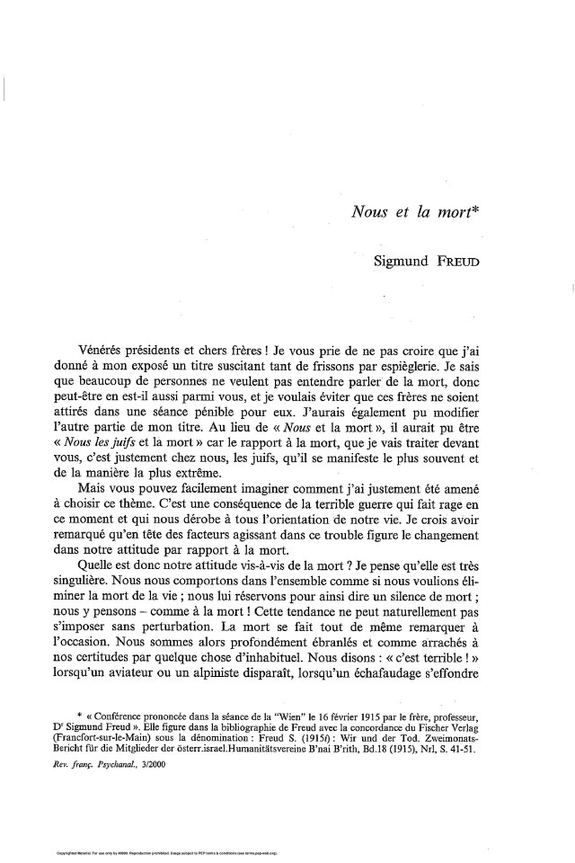 (Francfort-sur-le-Main) sous la d&nomination : Freud S. (19155): Wir und der Tod. Zweimonats-
