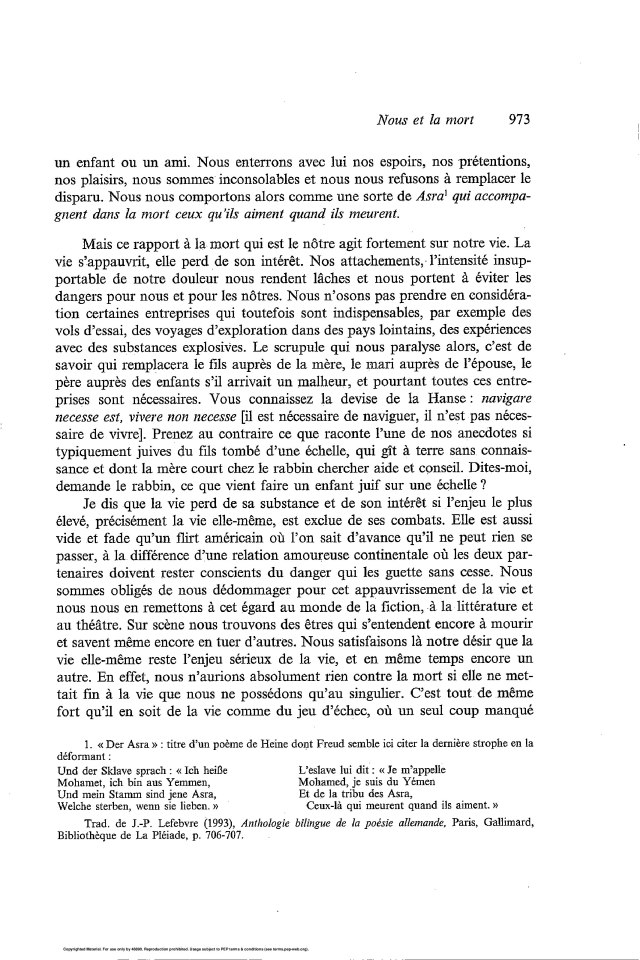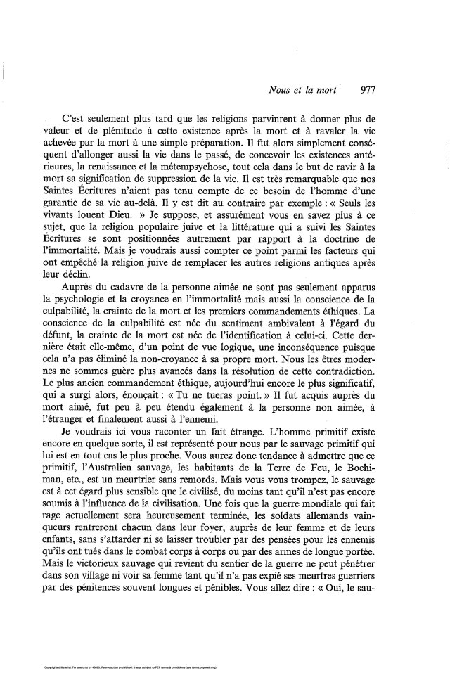 Pautre partie de mon titre. Au lieu de « Nous et la mort », il aurait pu &tre