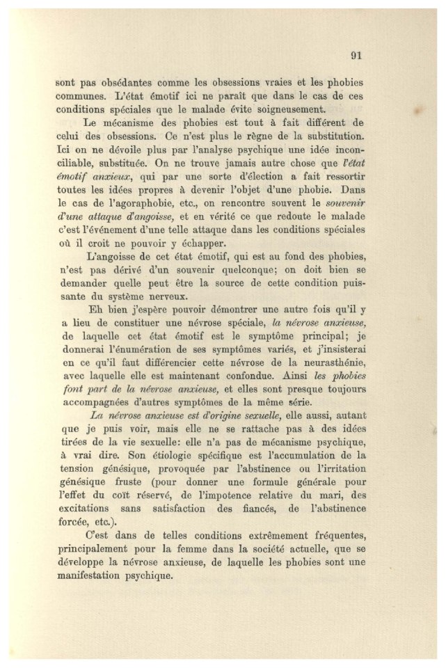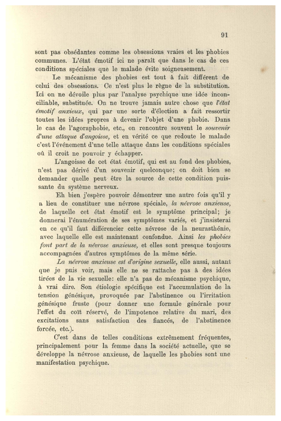 développe la névrose anxieuse, de laquelle les phobies sont une