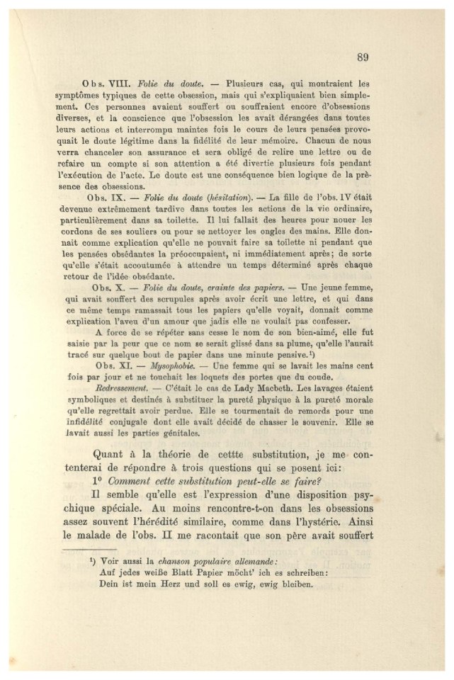 retour de l’idée obsédante.Obs, X. — Folie du doute, crainte des papiers. — Une jeune femme,