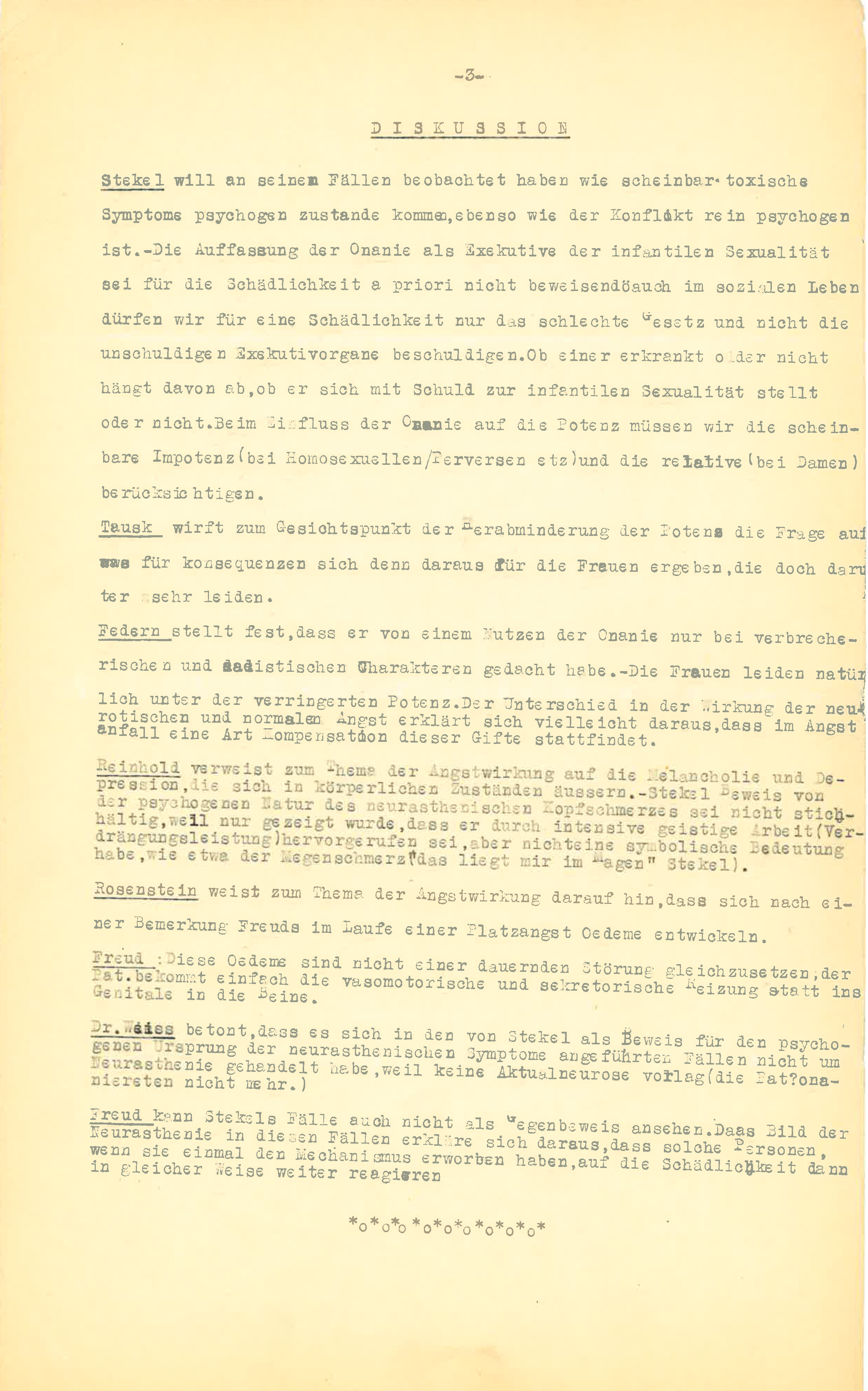 1. diss betont, dass es sich in den von Stekel als Beweis für den psycho-