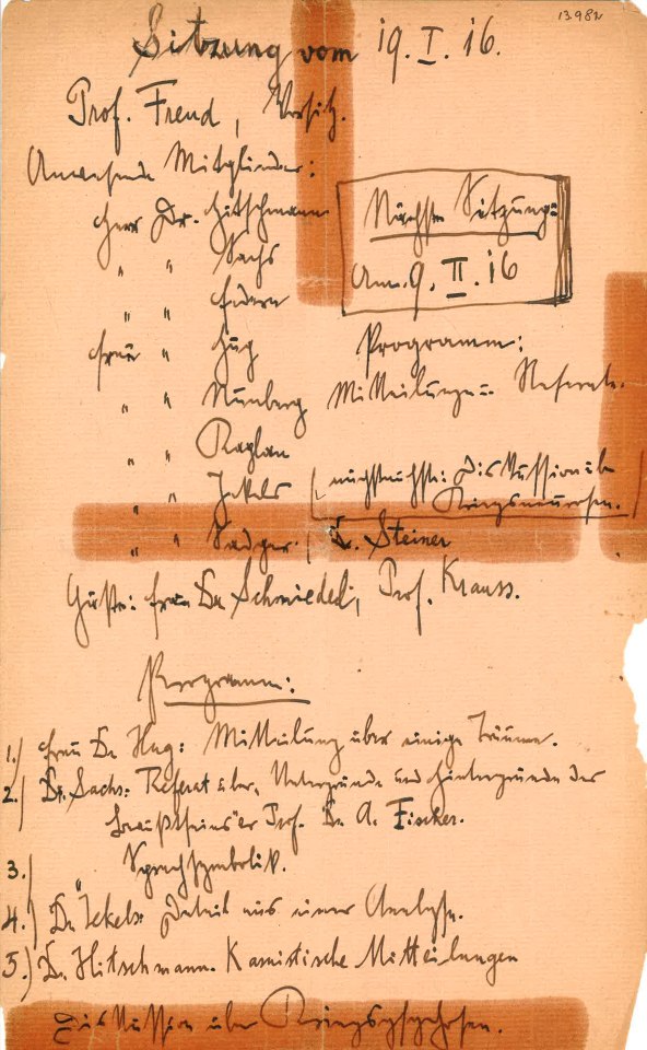Protokoll des 8. Vortragsabends des 14. Vereinsjahres der Wiener Psychoanalytischen Vereinigung am 9. Februar 1916. Mitteilungen und Referate