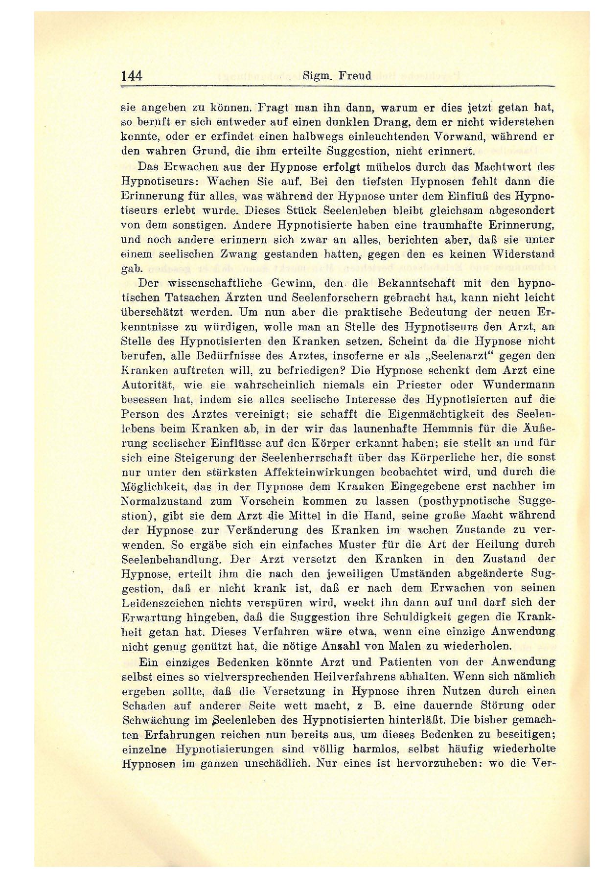 gemacht hat. Man kann es dann erzielen, daß bei wiederholten Hypnosen die