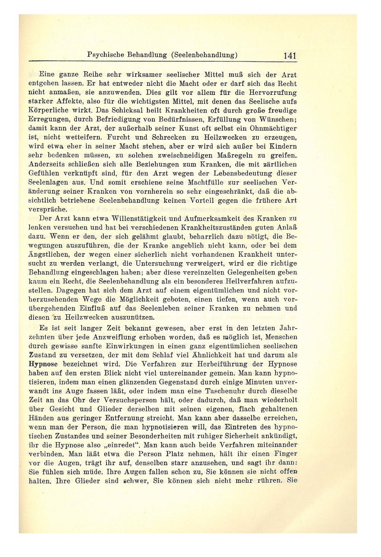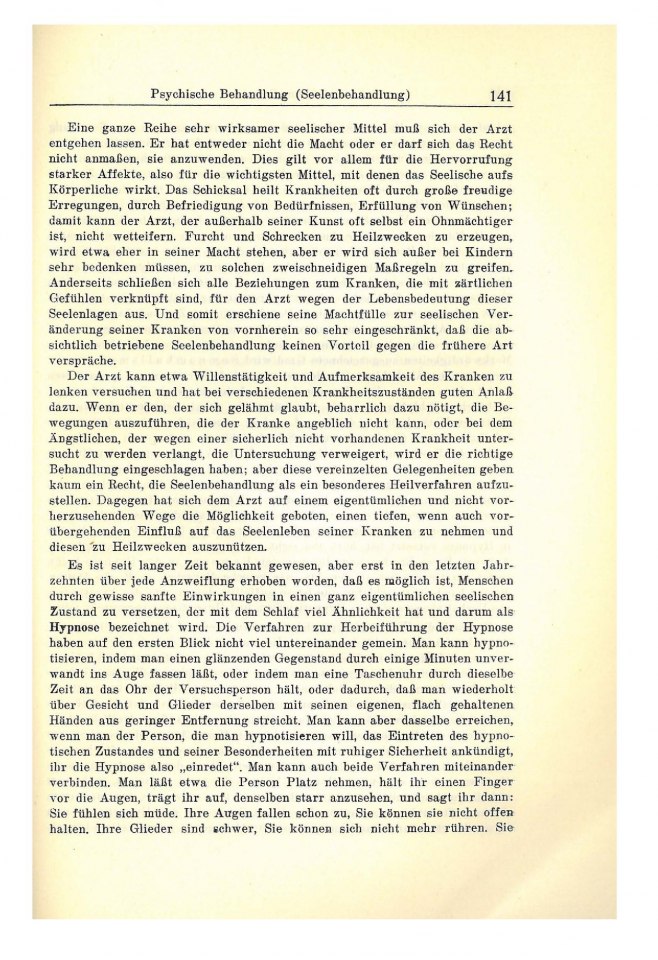 Einwirkung auf die Seele des Kranken ermöglichen. Man darf sich der