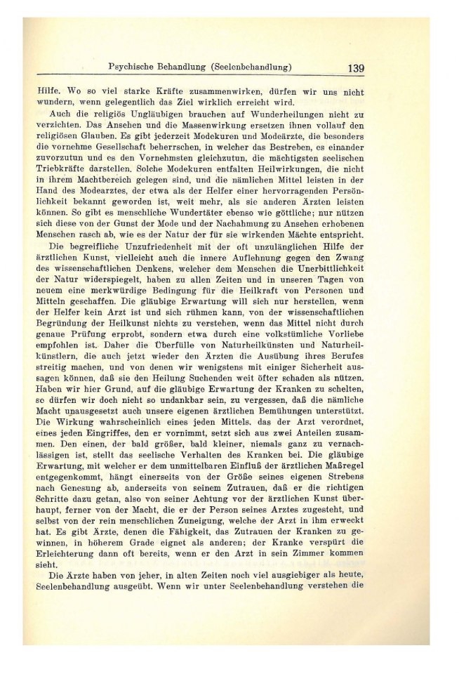 Seele durch „bloße“ Worte des Arztes beseitigt werden sollen. Er wird meinen,