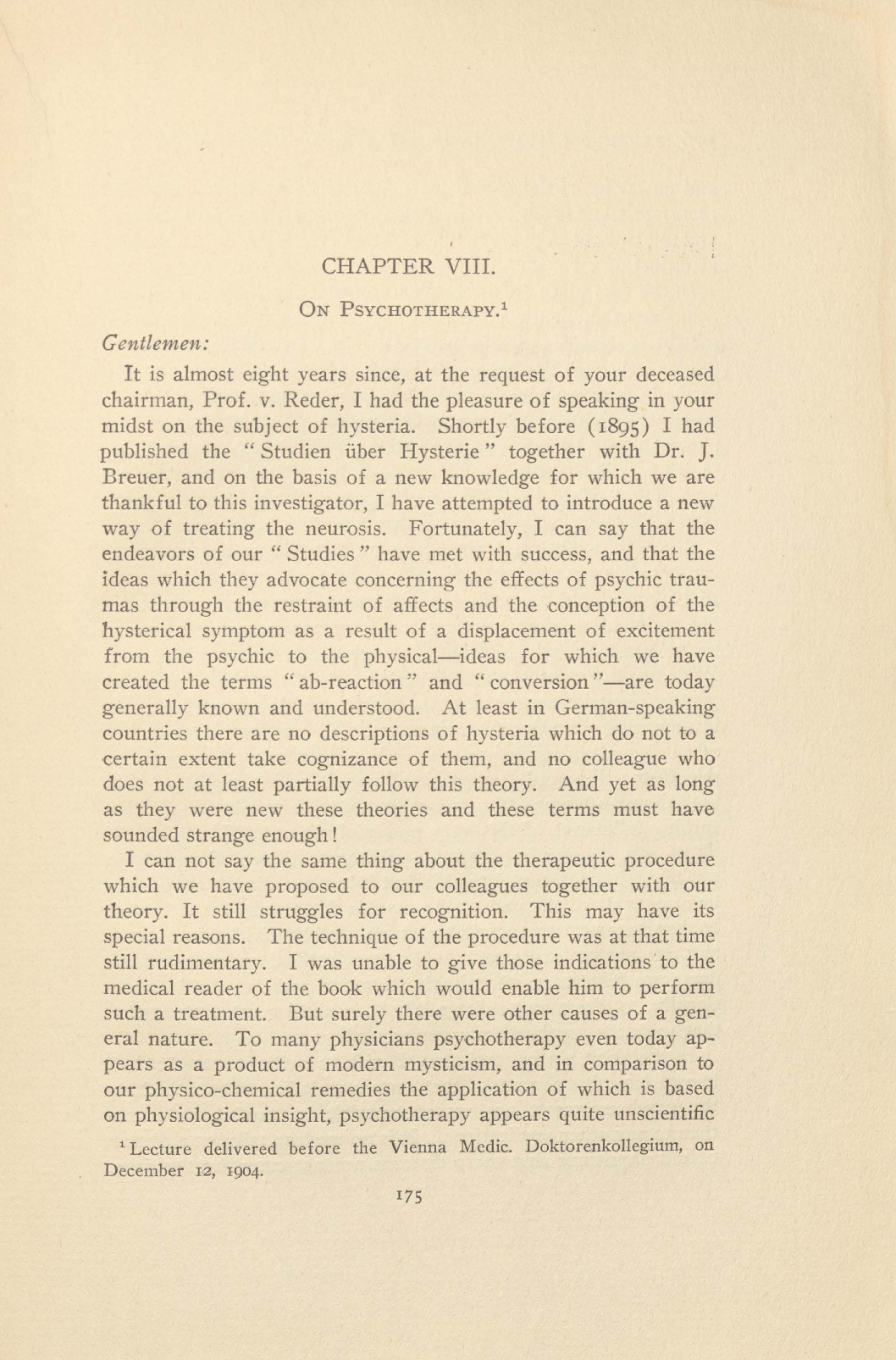 "Lecture delivered before the Vienna Medic. Doktorenkollegium, on