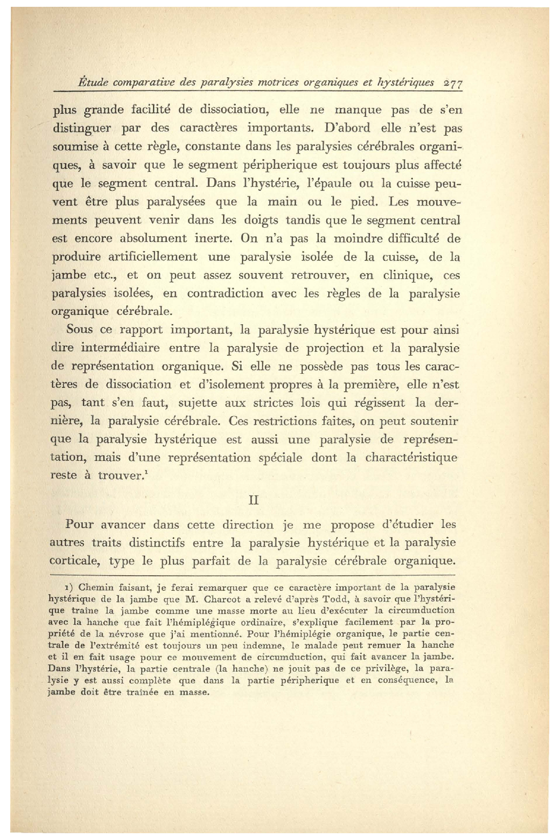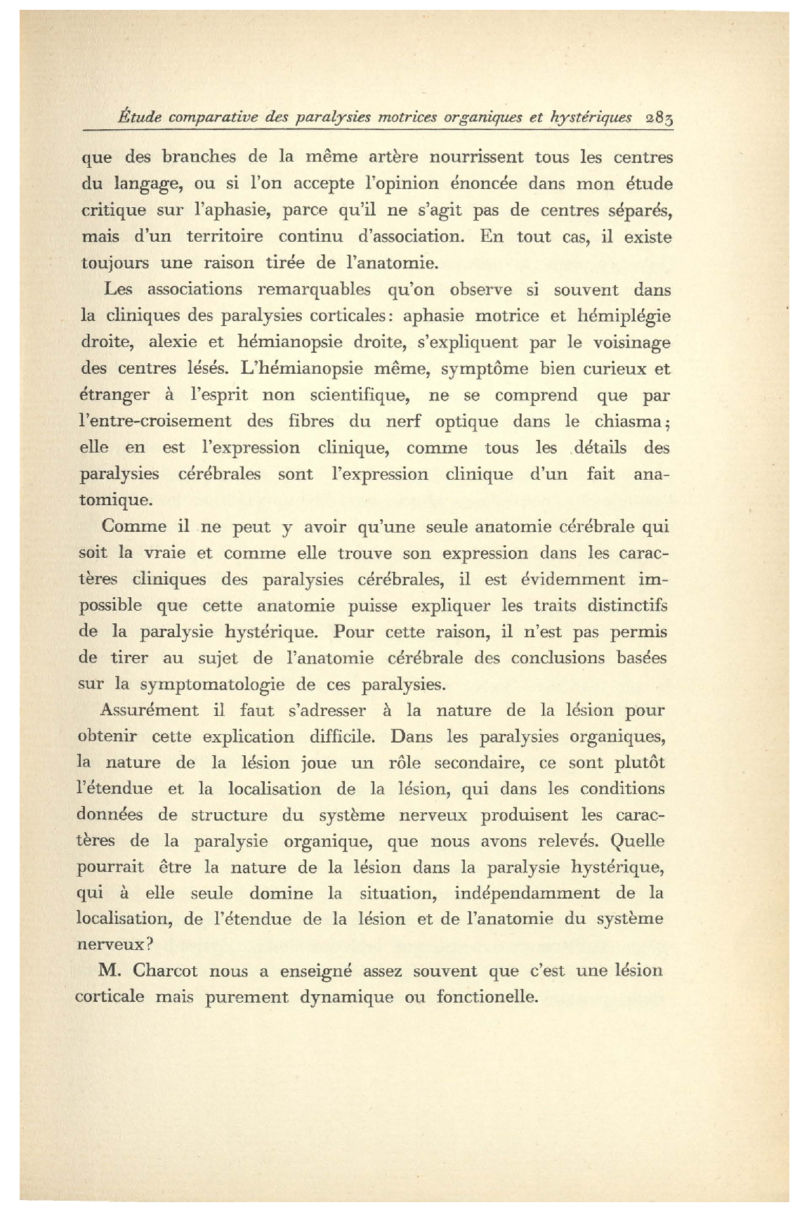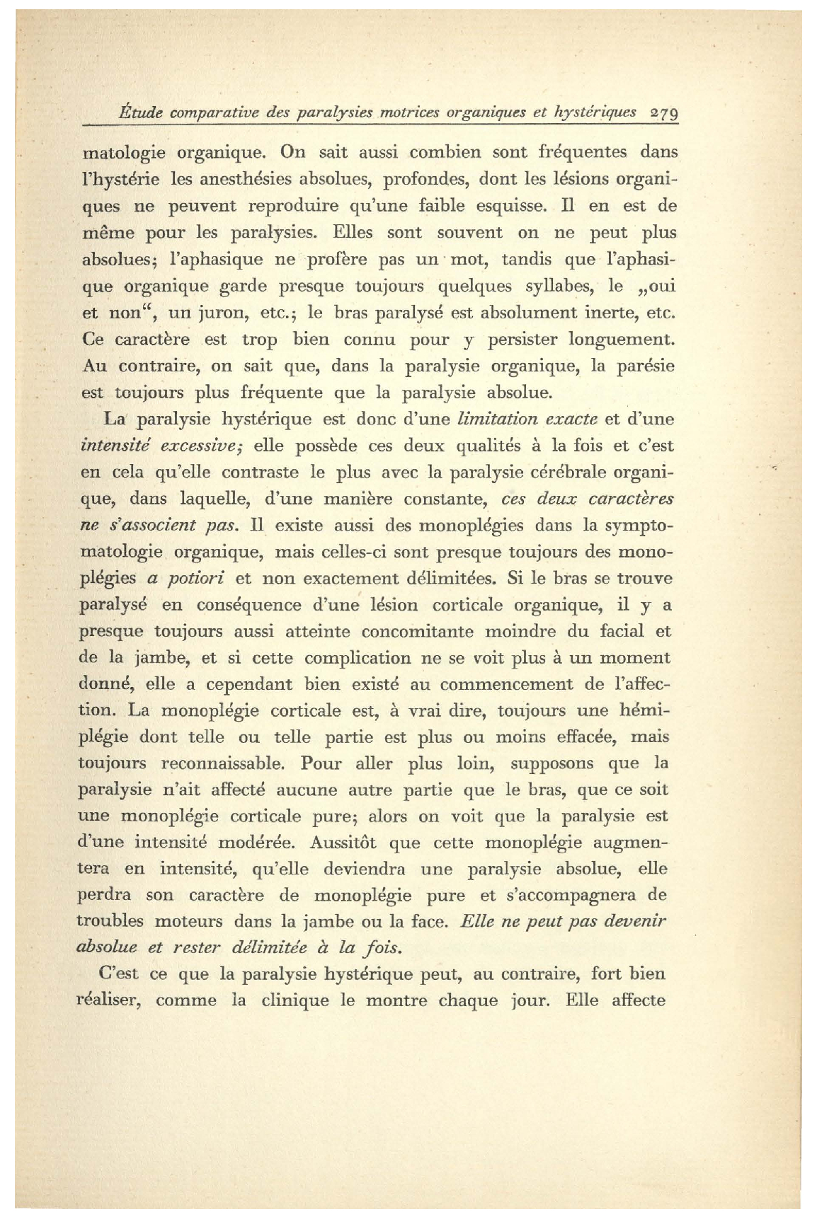 Etude comparative des paralysies motrices organiques et hystériques 275