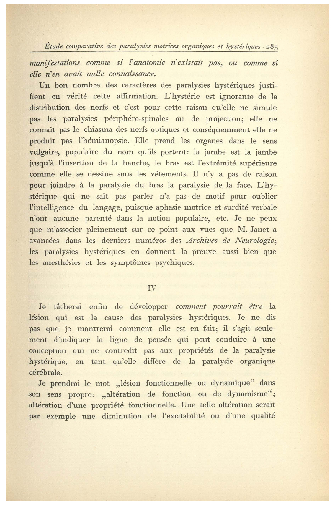 Étude comparative des paralysies motrices organiques et hystériques 289