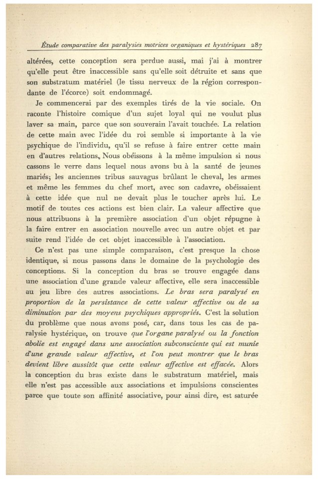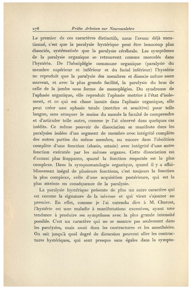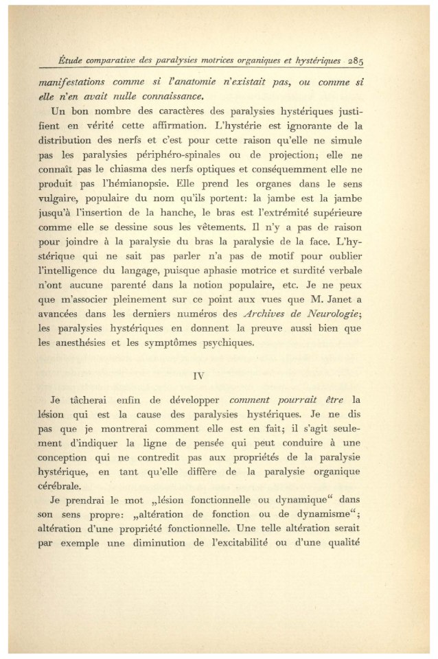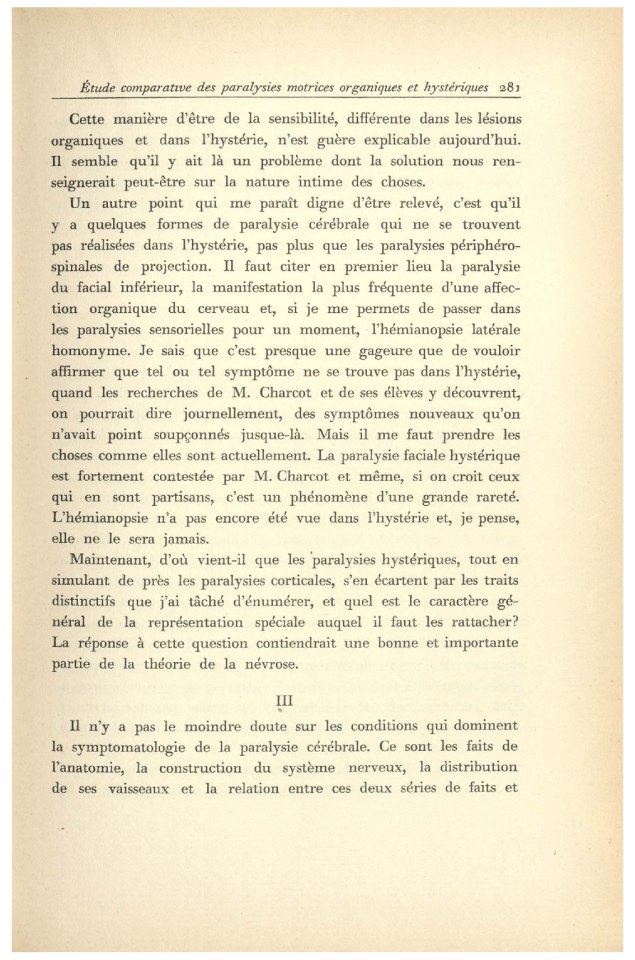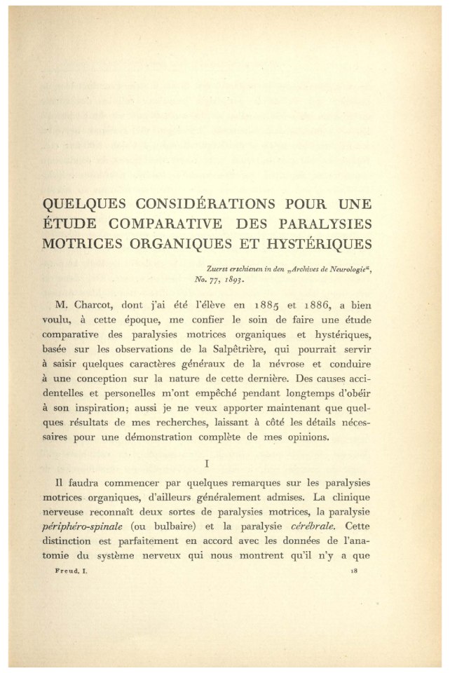 Quelques considérations pour une étude comparative des paralysies motrices organiqes et hystériqes 1893-006/1925