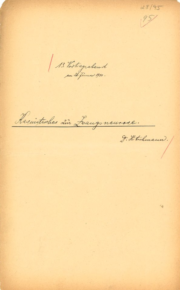 Protokoll des 13. Vortragsabends des 8. Jahres der Psychologischen Mittwoch-Gesellschaft am 26. Januar 1910. Eduard Hitschmann: Kasuistisches zur Zwangsneurose