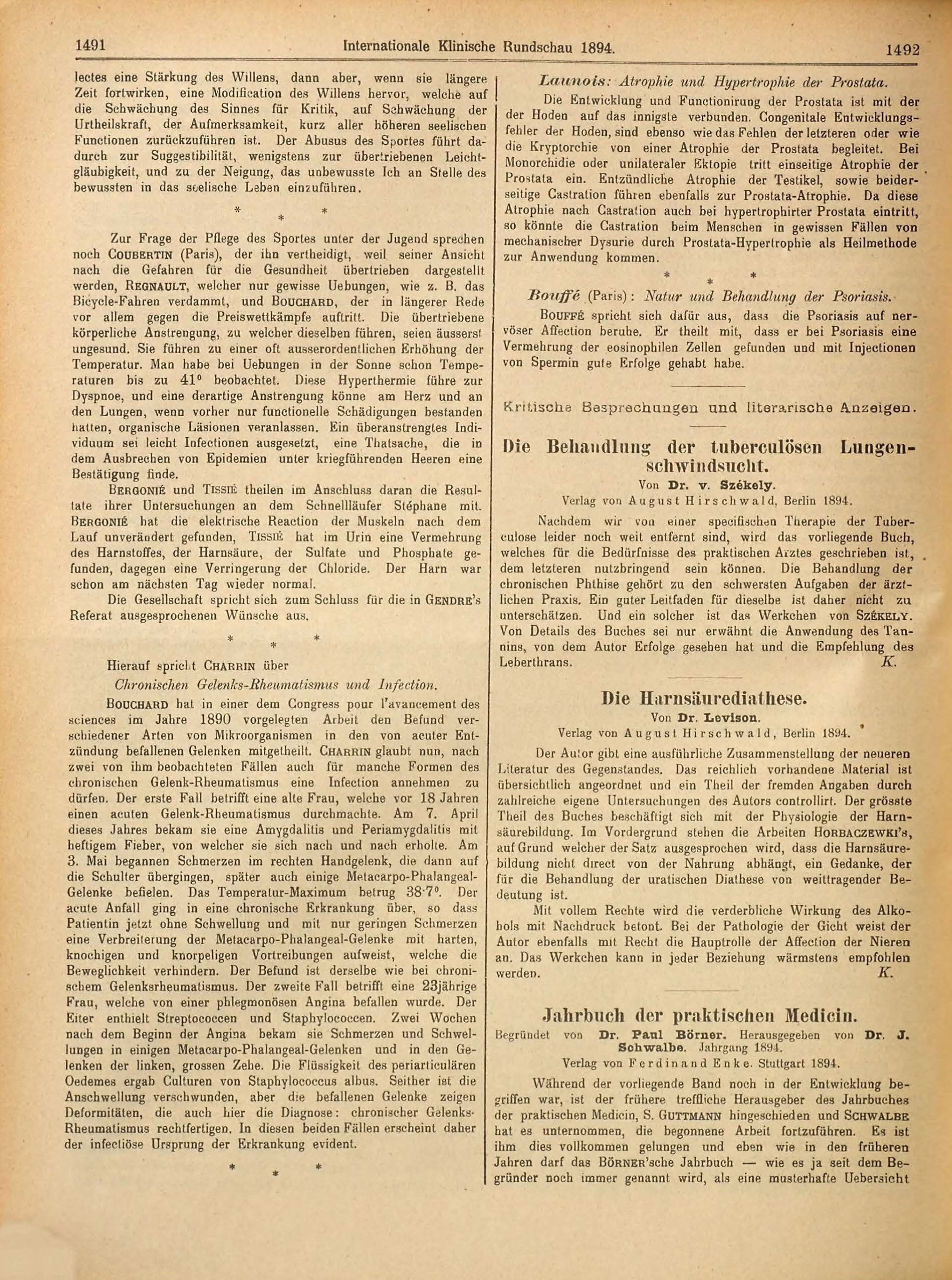 Begründet von Dr. Paul Börner. Herausgegeben von Dr. J. Schwalbe. Jahrgang 1894.