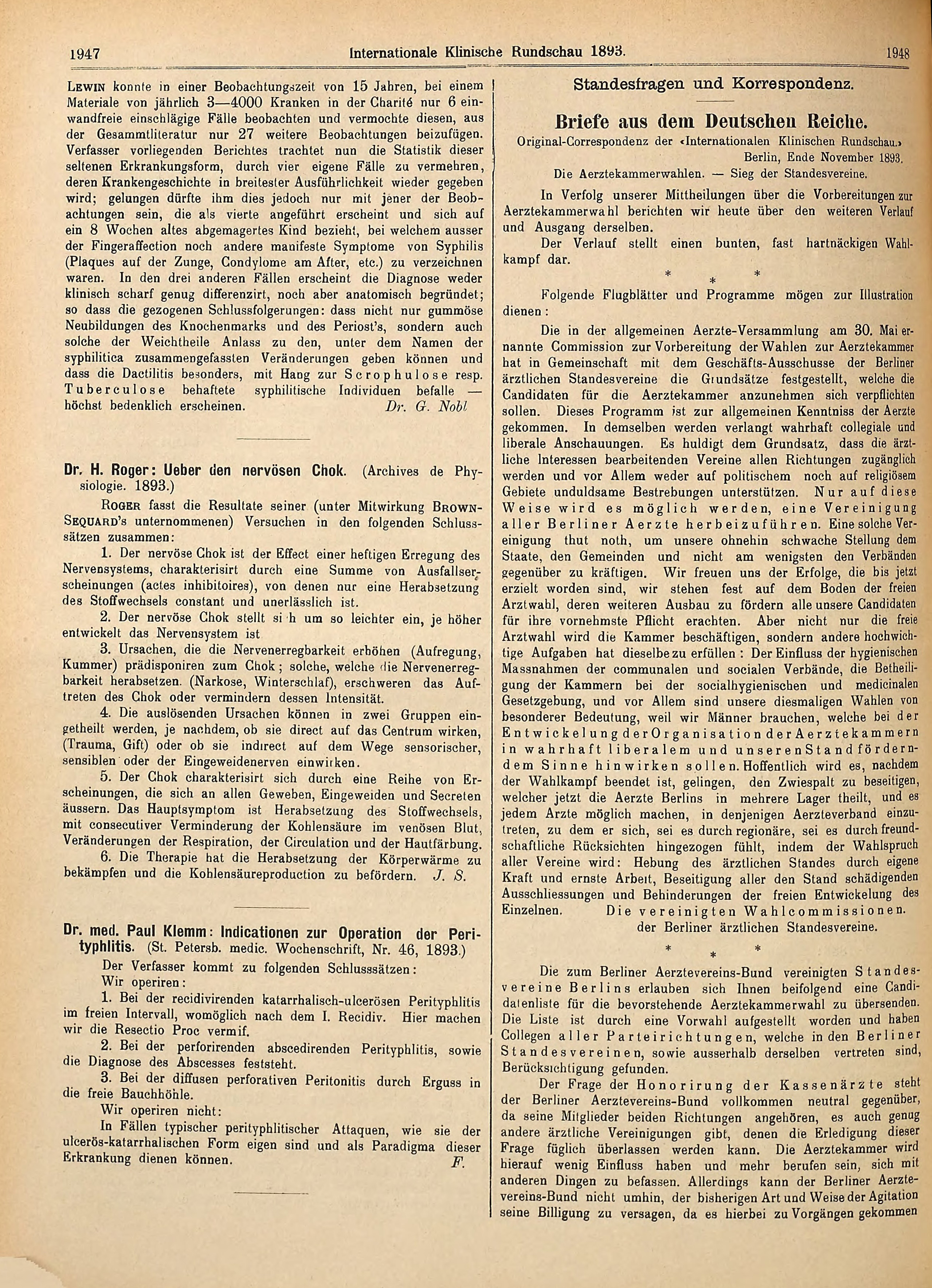 Dr. med. Paul Klemm: Indicationen zur Operation der Peri-