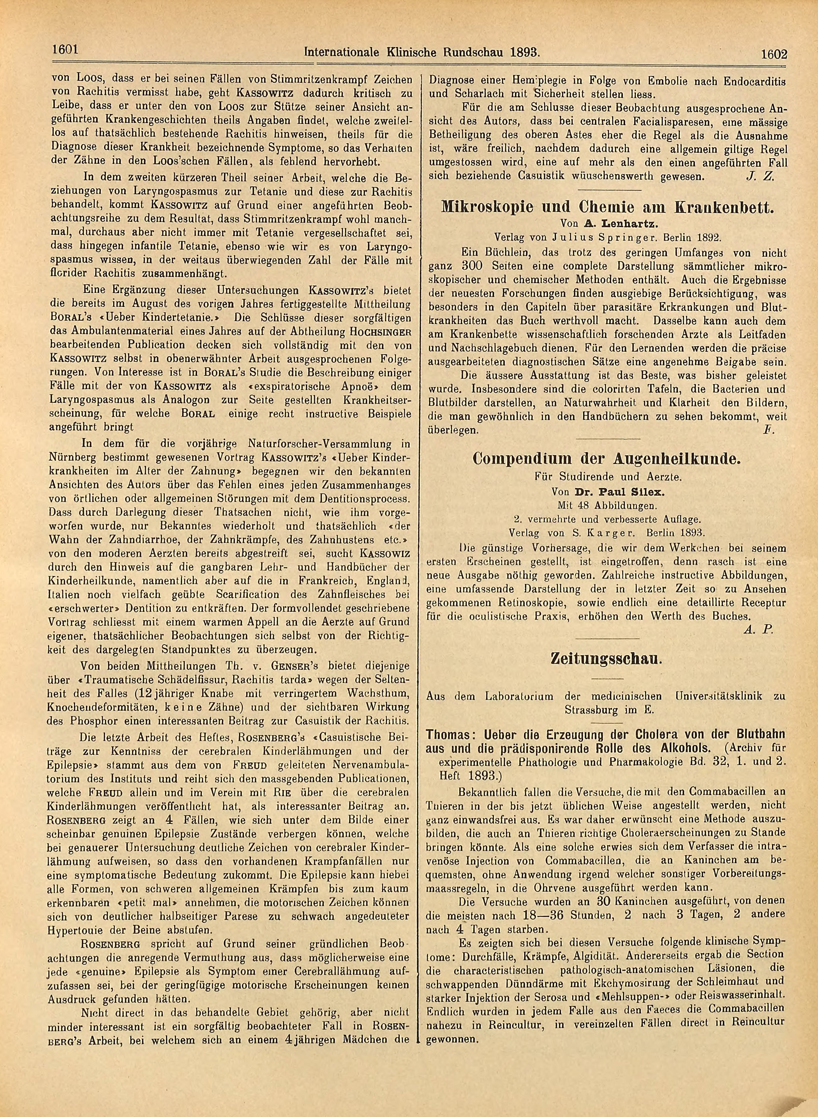 Rezension [gezeichnet: "F."] von: Lenhartz, A. ›Mikroskopie und Chemie am Krankenbett‹ 1893-204/1893