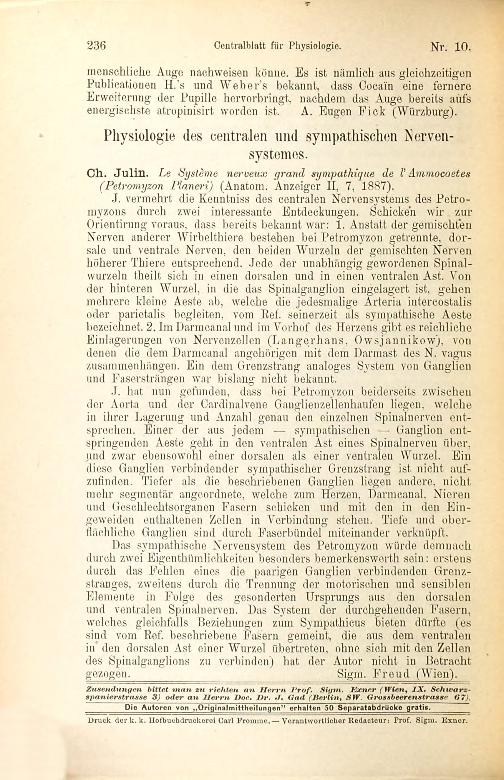 (Petromyzon Planeri) (Anatom. Anzeiger II, 7, 1887).