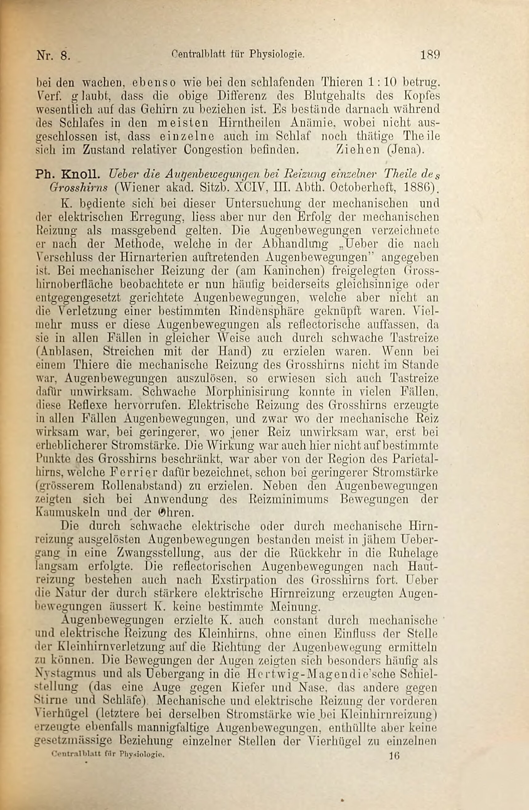 sich im Zustand relativer Congestion befinden. Ziehen (Jena).Ph. Knoll. Ueber die Augenbewegungen bei Reizung einzelner Theile d s