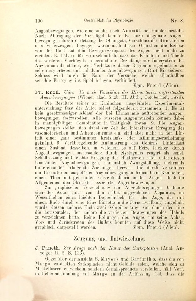 Sigm. Freud (Wien).Ph. Knoll. Ueber die nach Verschluss der Hirnarterien auftretenden