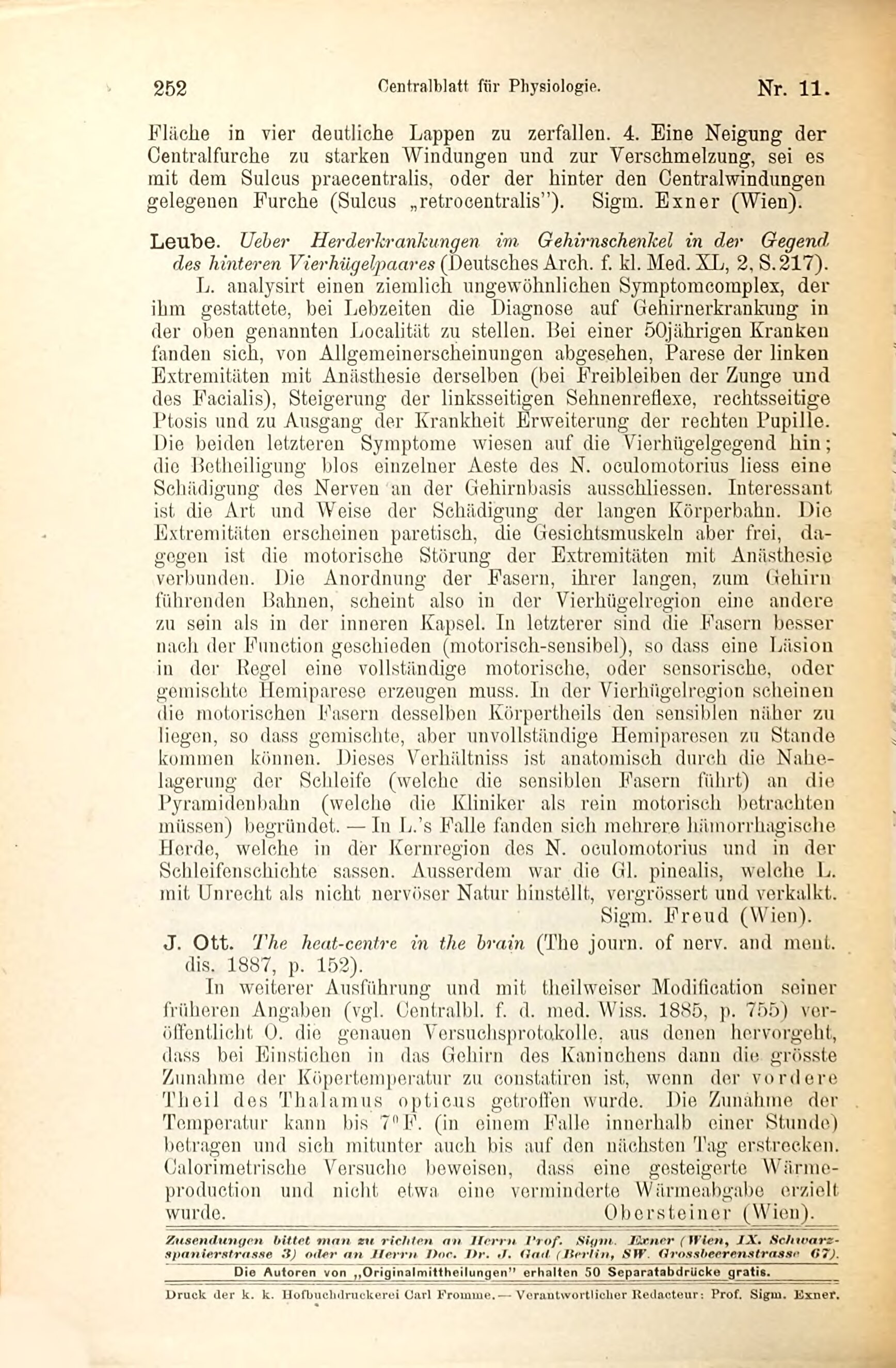 Leube. Ueber Herderkrankungen im Gehirnschenkel in der Gegend