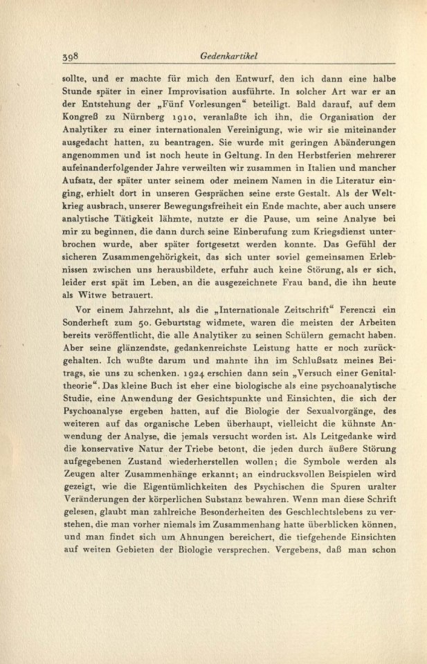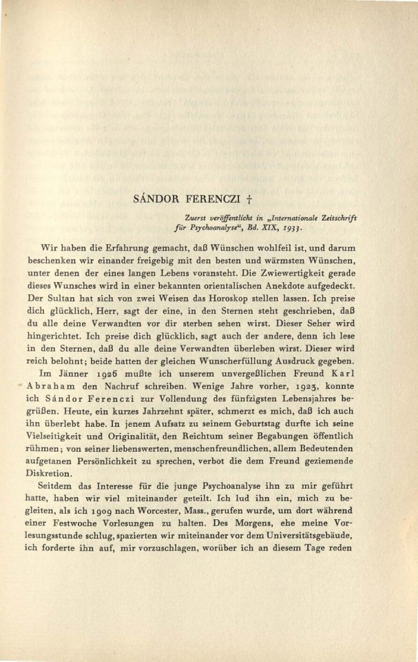 Vor einem Jahrzehnt, als die „Internationale Zeitschrift“ **Ferenczi** ein