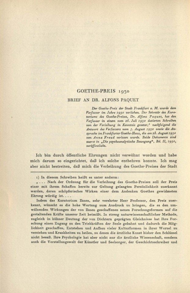 BRIEF AN DR. ALFONS PAQUETDer Goethe-Preis der Stadt Frankfurt a. M. wurde dem