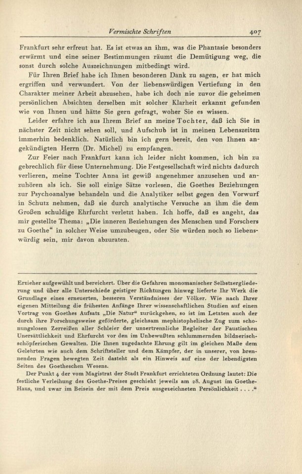 »... Nach der Ordnung für die Verleihung des Goethe-Preises soll der Preis