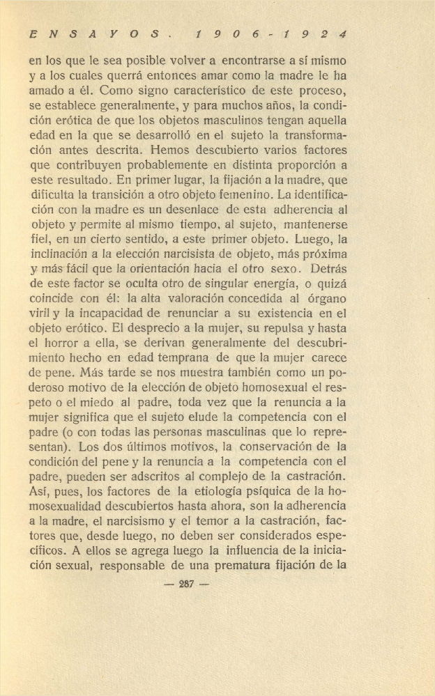 deroso motivo de la elección de objeto homosexual el res-
