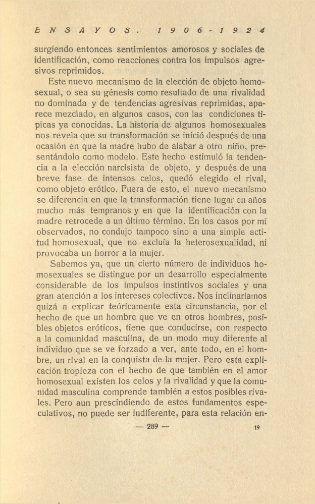 los celos, la paranoia y la homosexualidad1922.