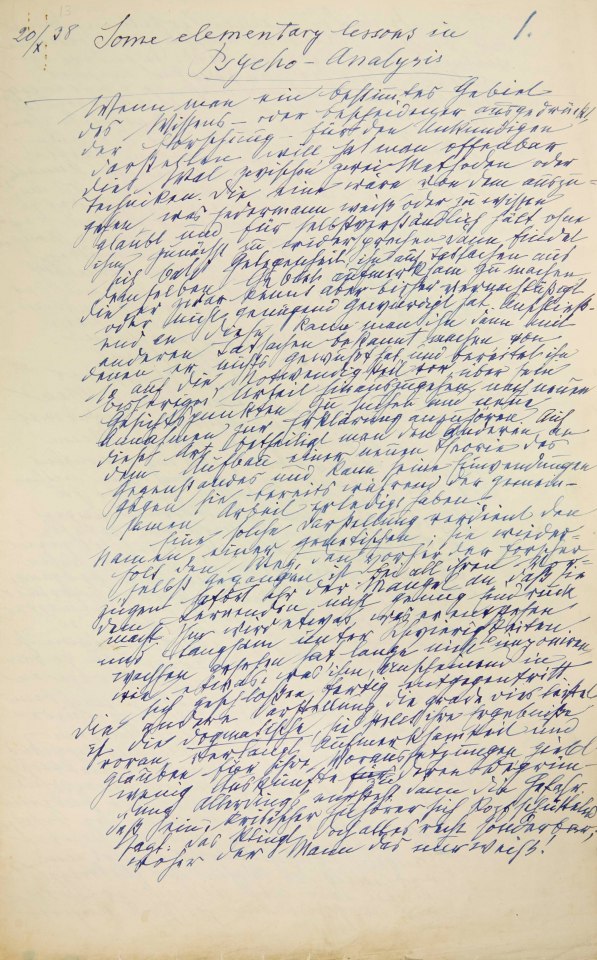Sigmund Freud Papers: Oversize, 1859-1985; Writings; 1940; “Some elementary lessons in Psycho-Analysis” [1938] [b], holograph manuscript