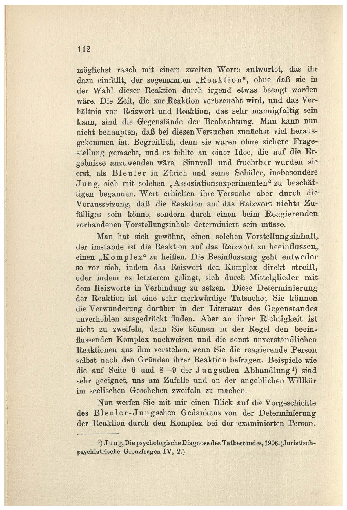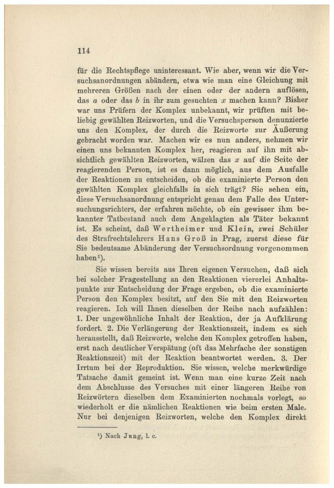 der Reaktion durch den Komplex bei der examinierten Person.‘) Jun g‚Die psychologische Diagnose des Tntbestsndes, 1908. (Juristisch-