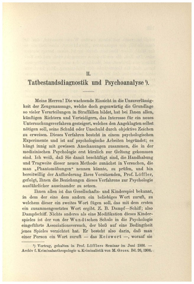Tatbestandsdiagnostik und Psychoanalyse ').Meine Herren! Die wachsende Einsicht in die Umverlässig-