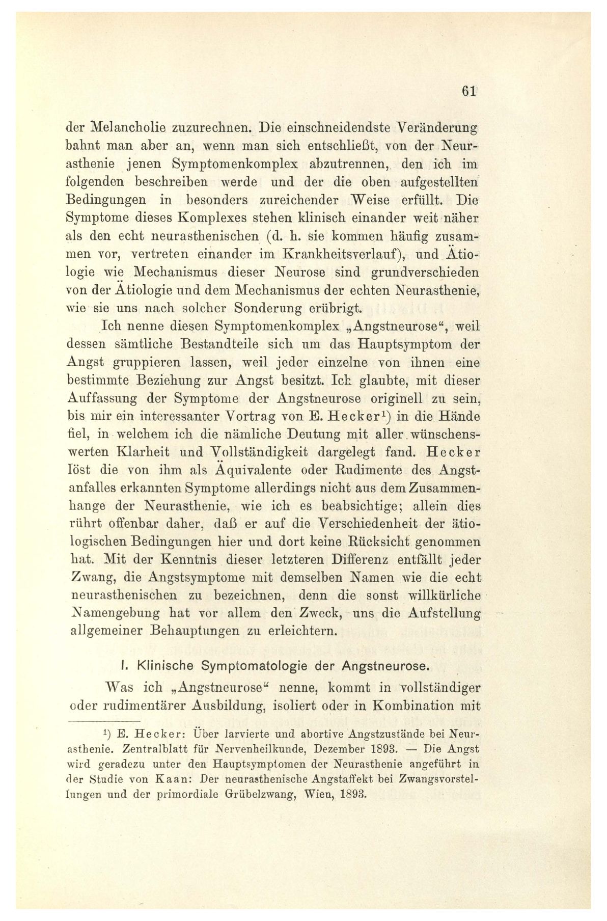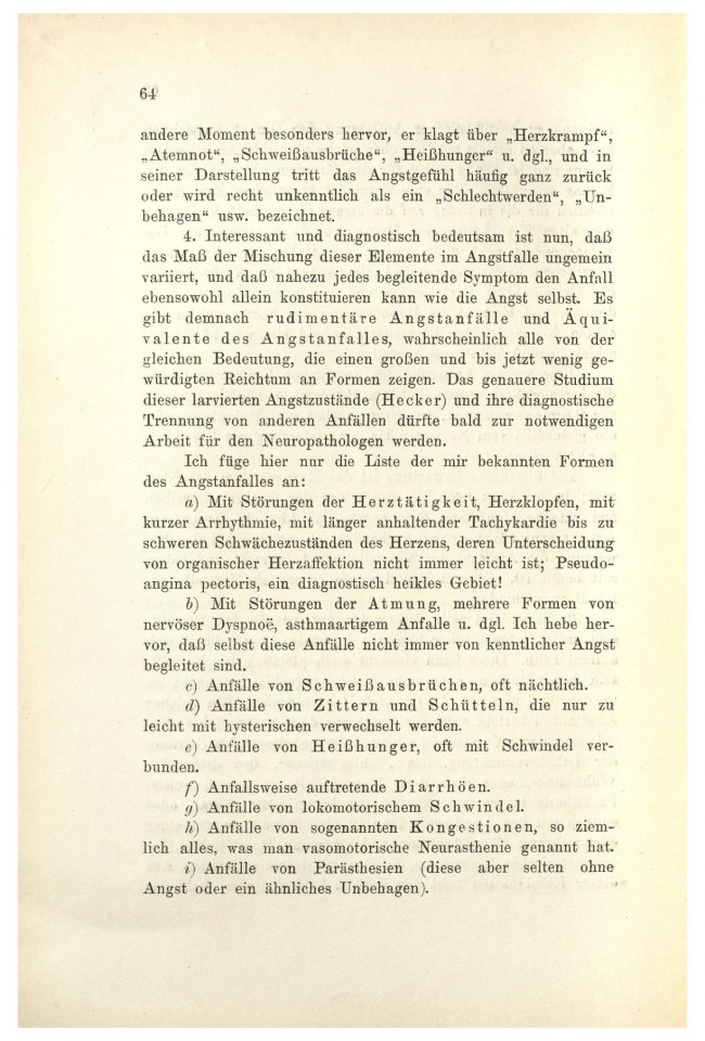 allgemeiner Behauptungen zu erleichtern.|. Klinische Symptomatologie der Angstneurose.