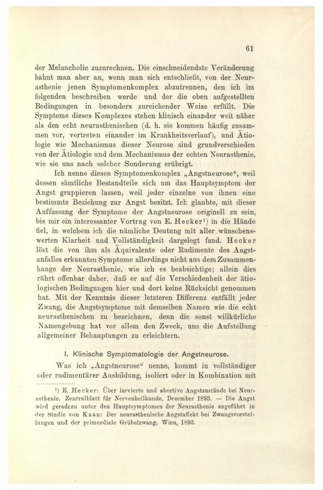 Auffassung der Symptome der Angstneurose originell zu sein,