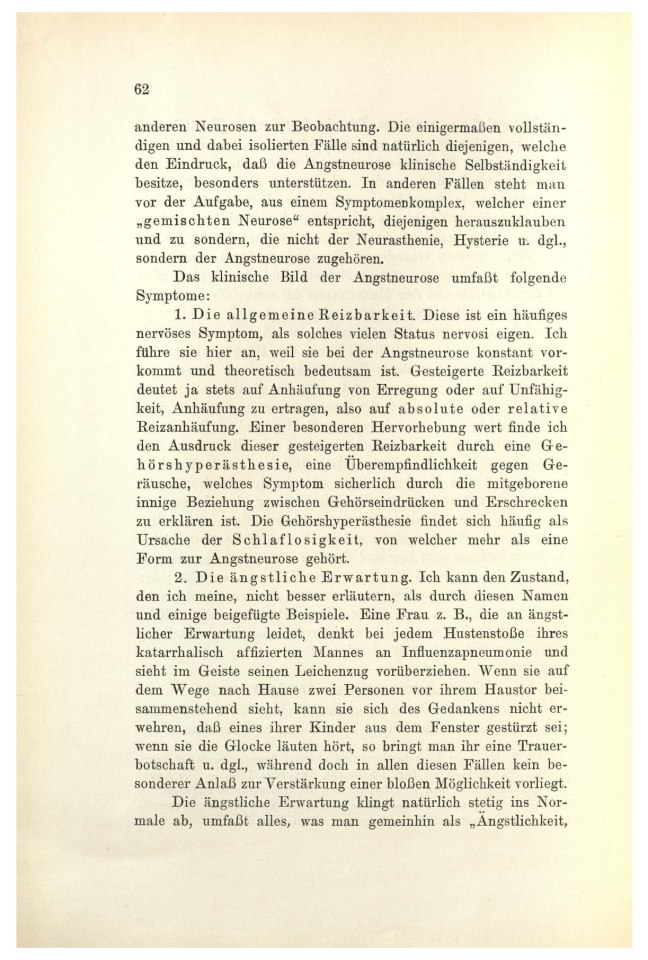 Form zur Angstneurose gehört.2. Die ängstliche Erwartung. Ich kann den Zustand,