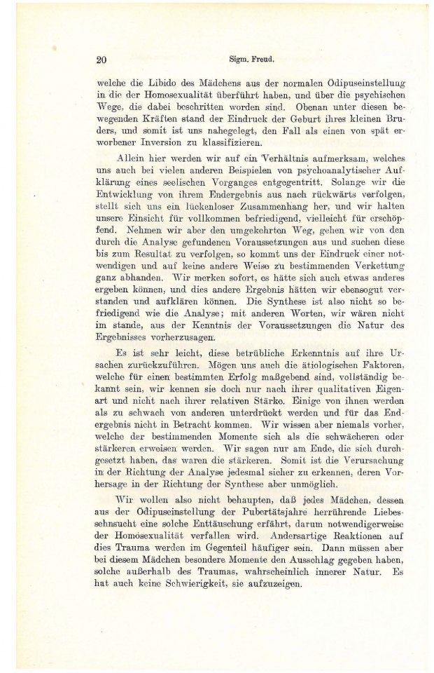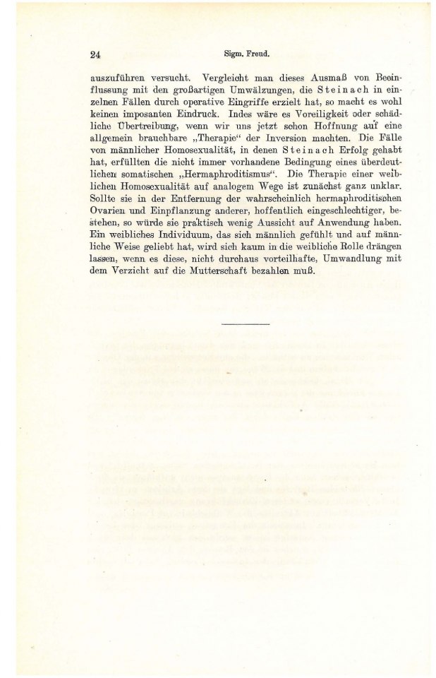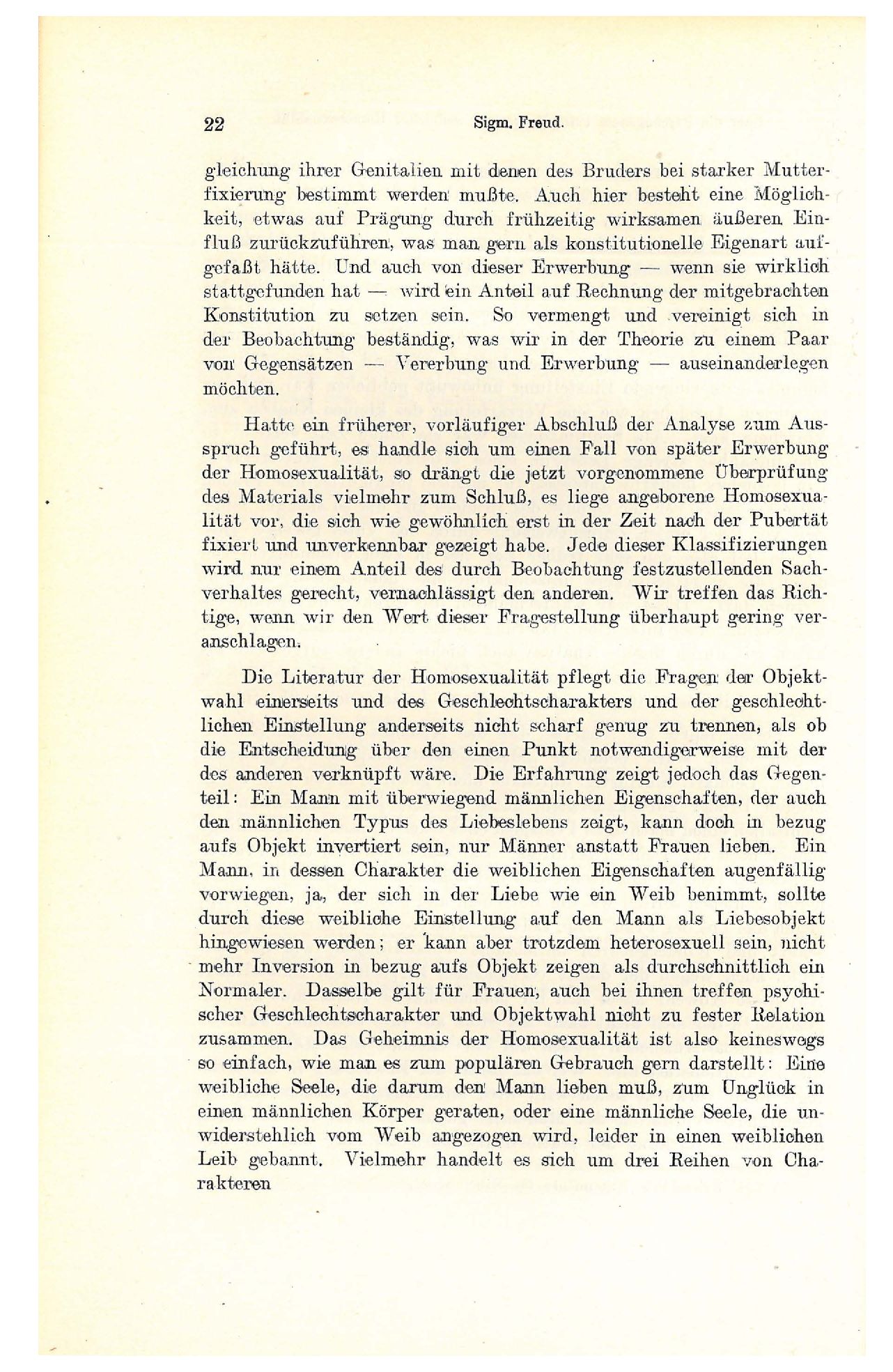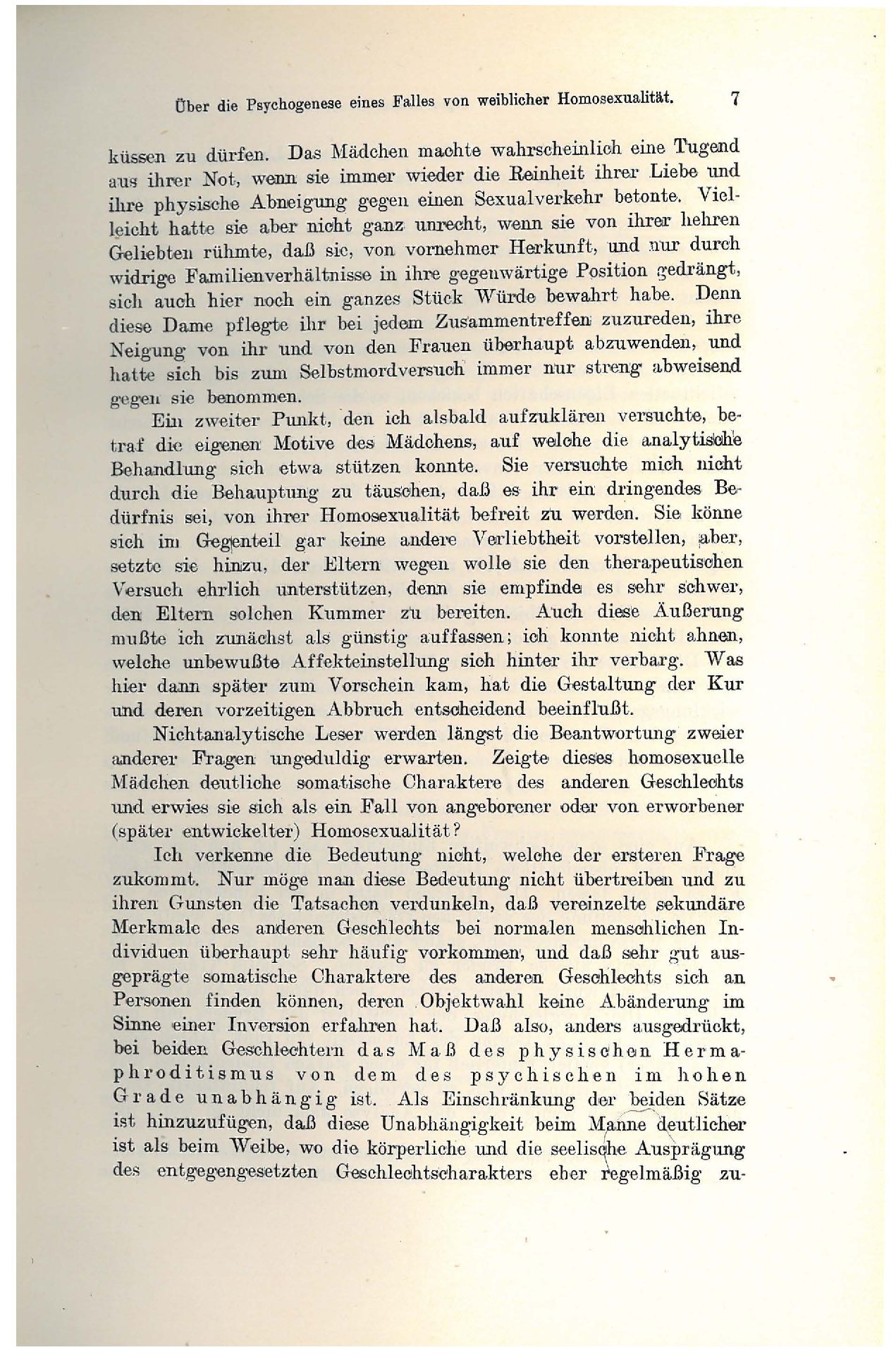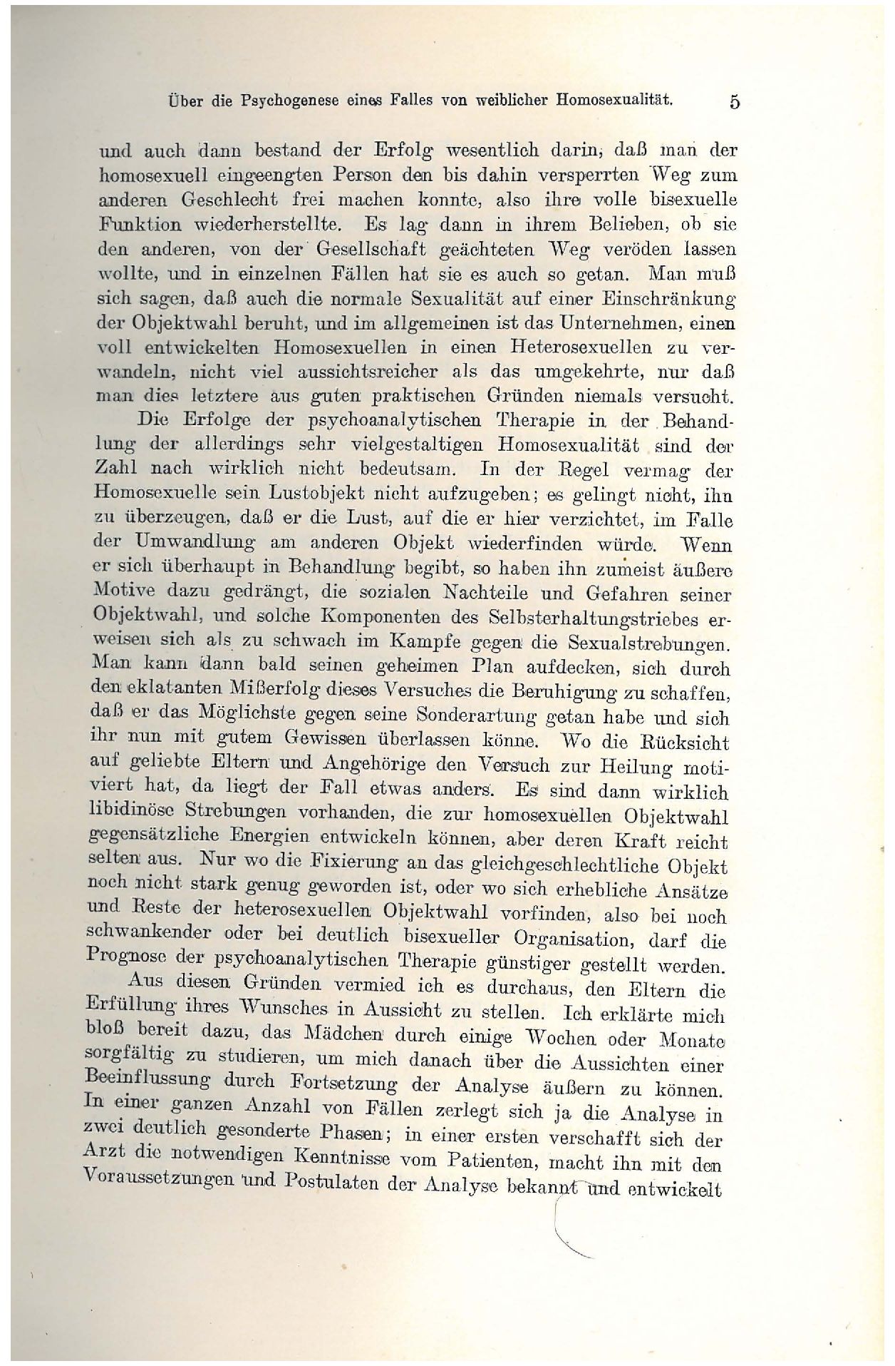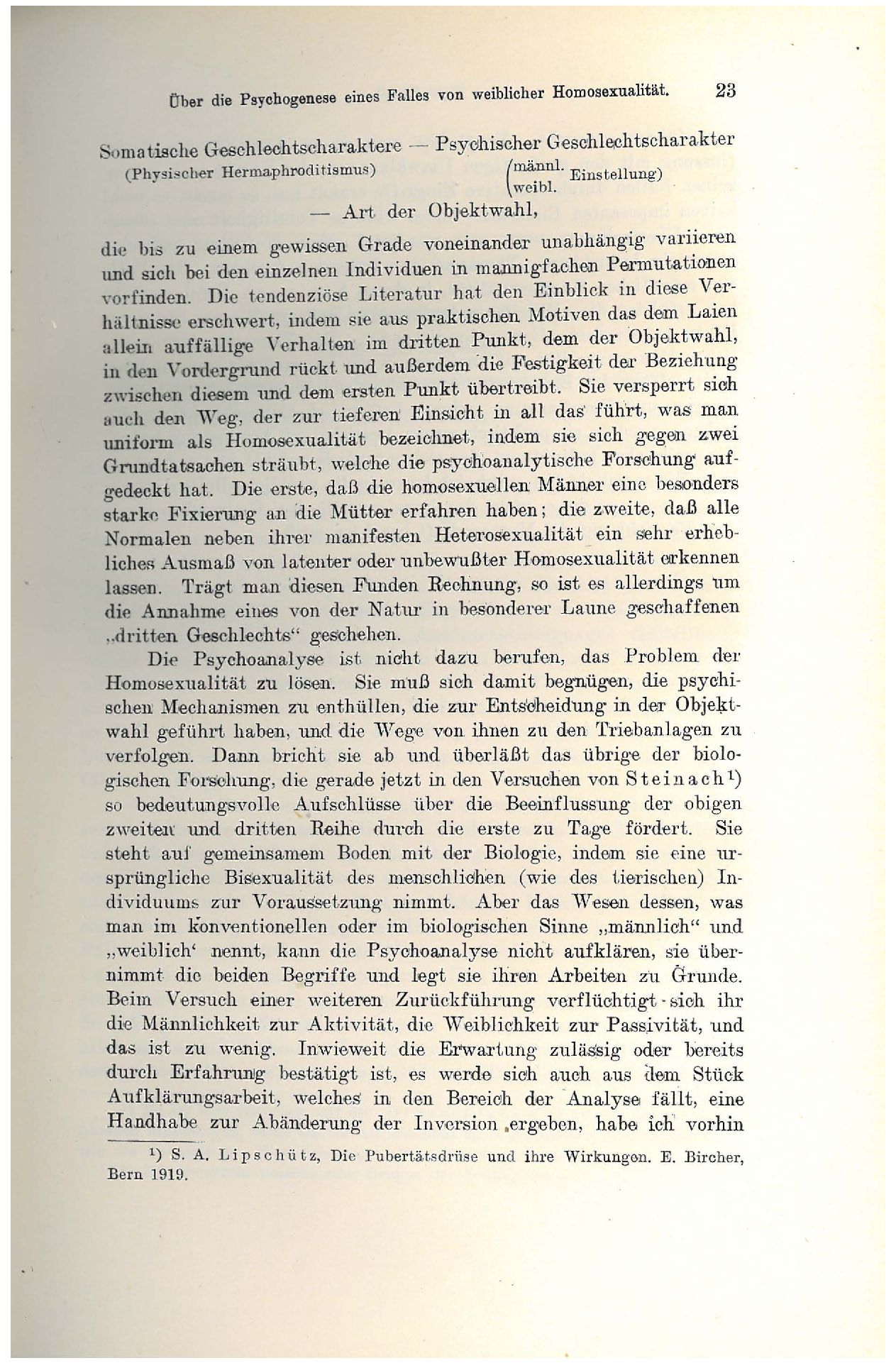 „dritten Geschlechts“ geschehen.Die Psychoanalyse ist nicht dazu berufen, das Problem der