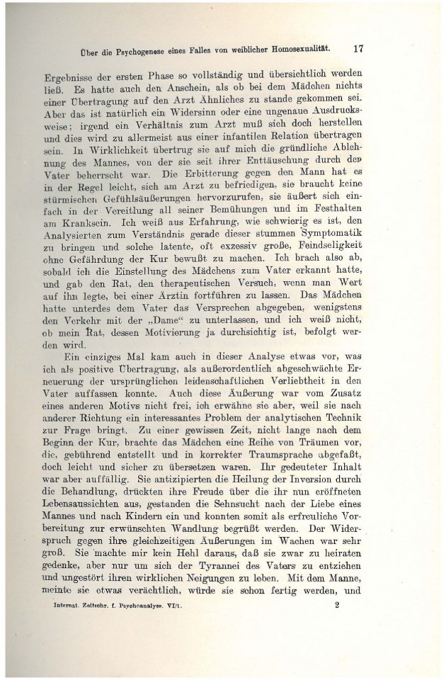 eines Falles von weiblicher Homosexualität.Von Sigm. Freud.