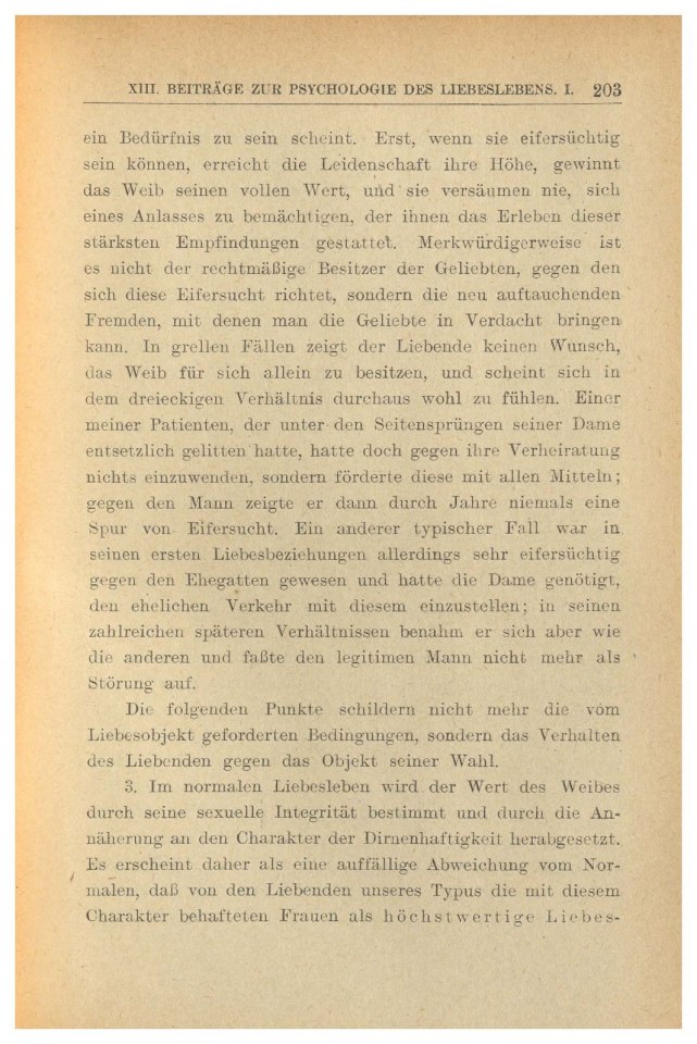 niemals ein Weib zum Liebesobjekt wählt, welches noch frei