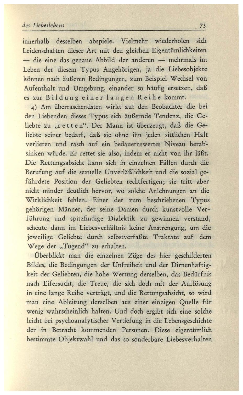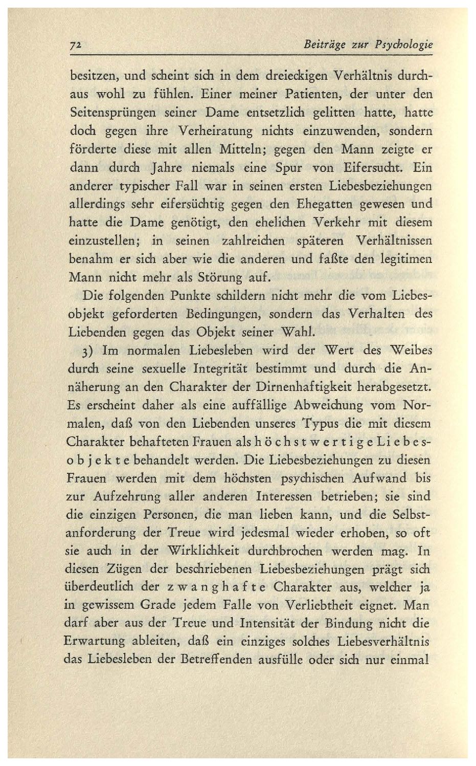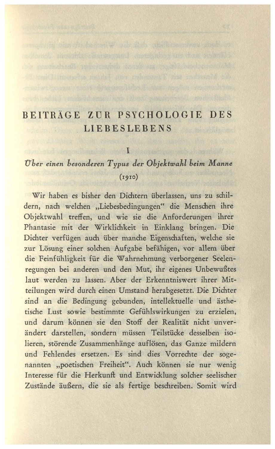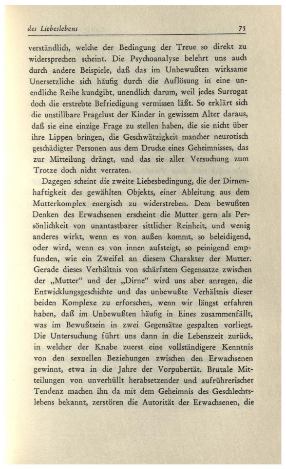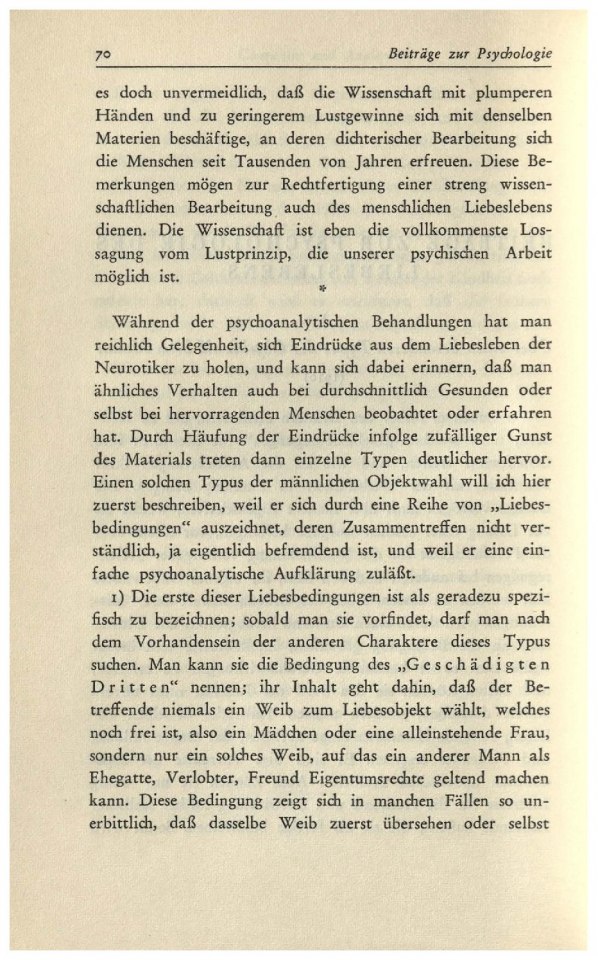 fache psychoanalytische Aufklärung zuläßt.1) Die erste dieser Liebesbedingungen ist als geradezu spezi-