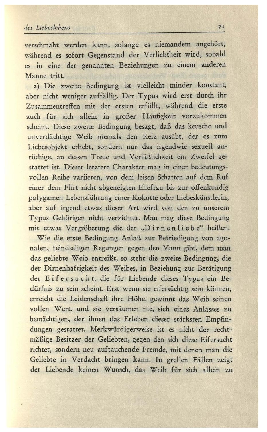 mit etwas Vergröberung die der „Dirnenliebe“ heißen.Wie die erste Bedingung Anlaß zur Befriedigung von ago-