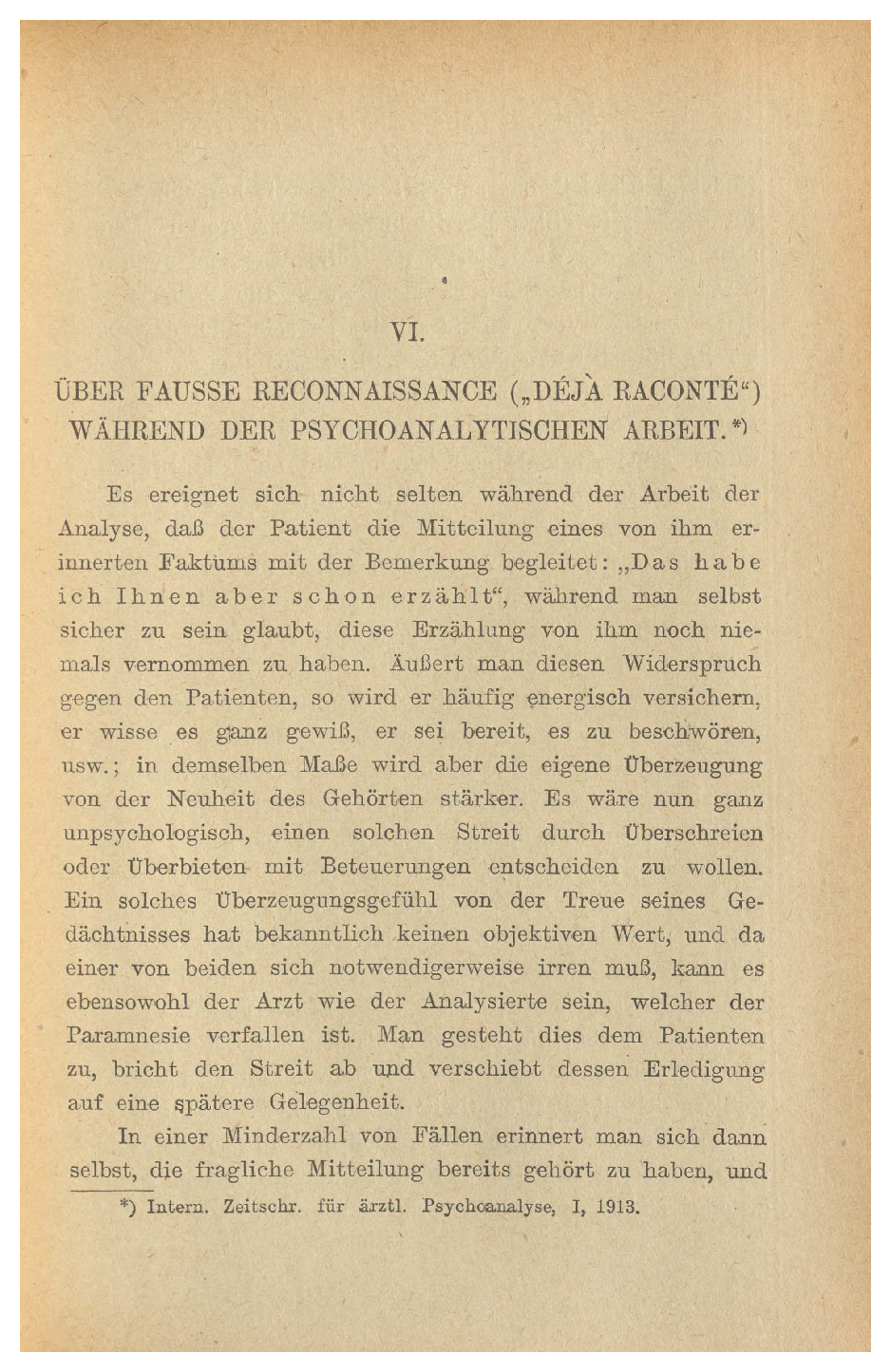 Über fausse reconnaissance („déjà raconté“) während der psychoanalytischen Arbeit 1914-001/1922