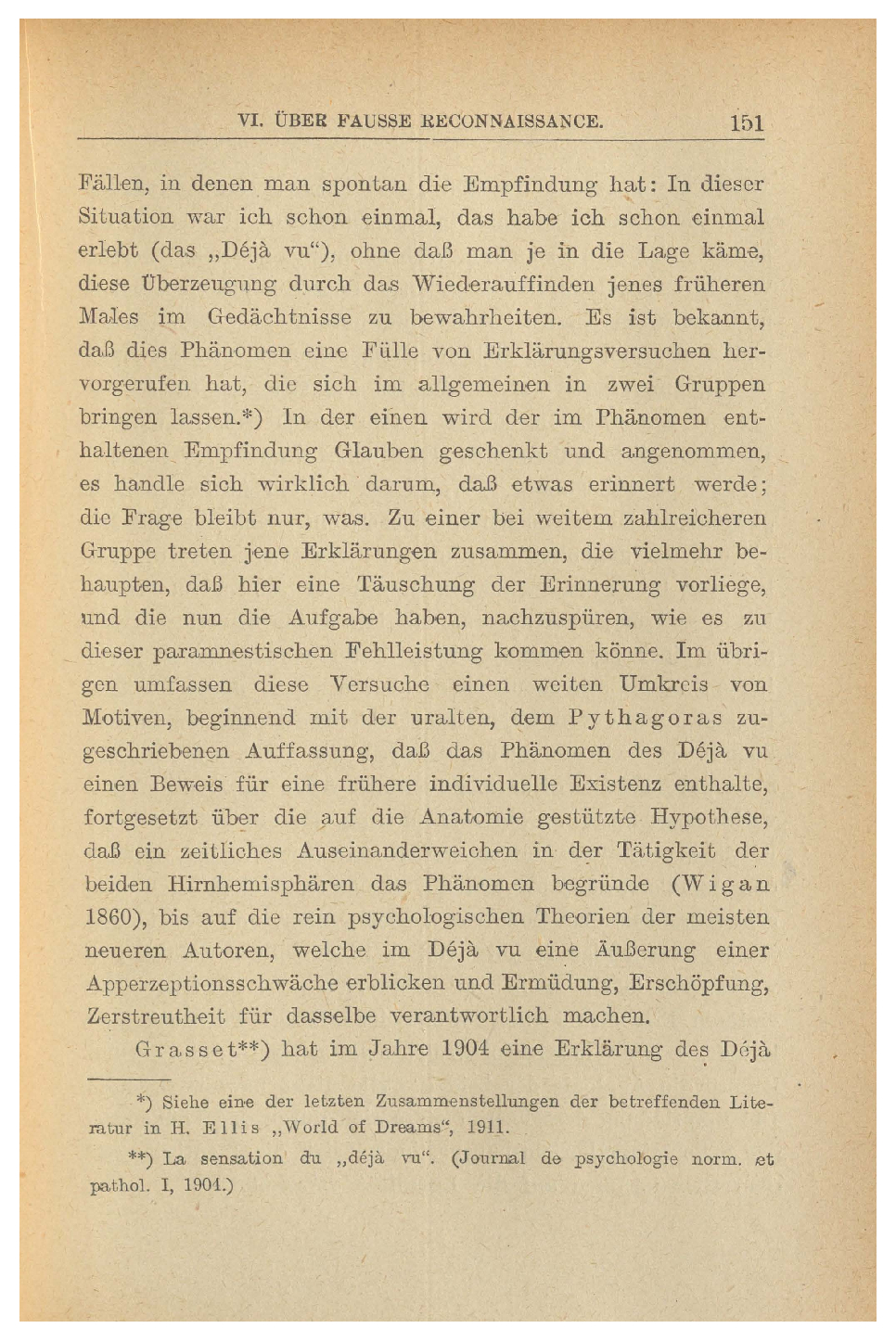 Grasset**) hat im Jahre 1904 eine Erklärung des Déjä.