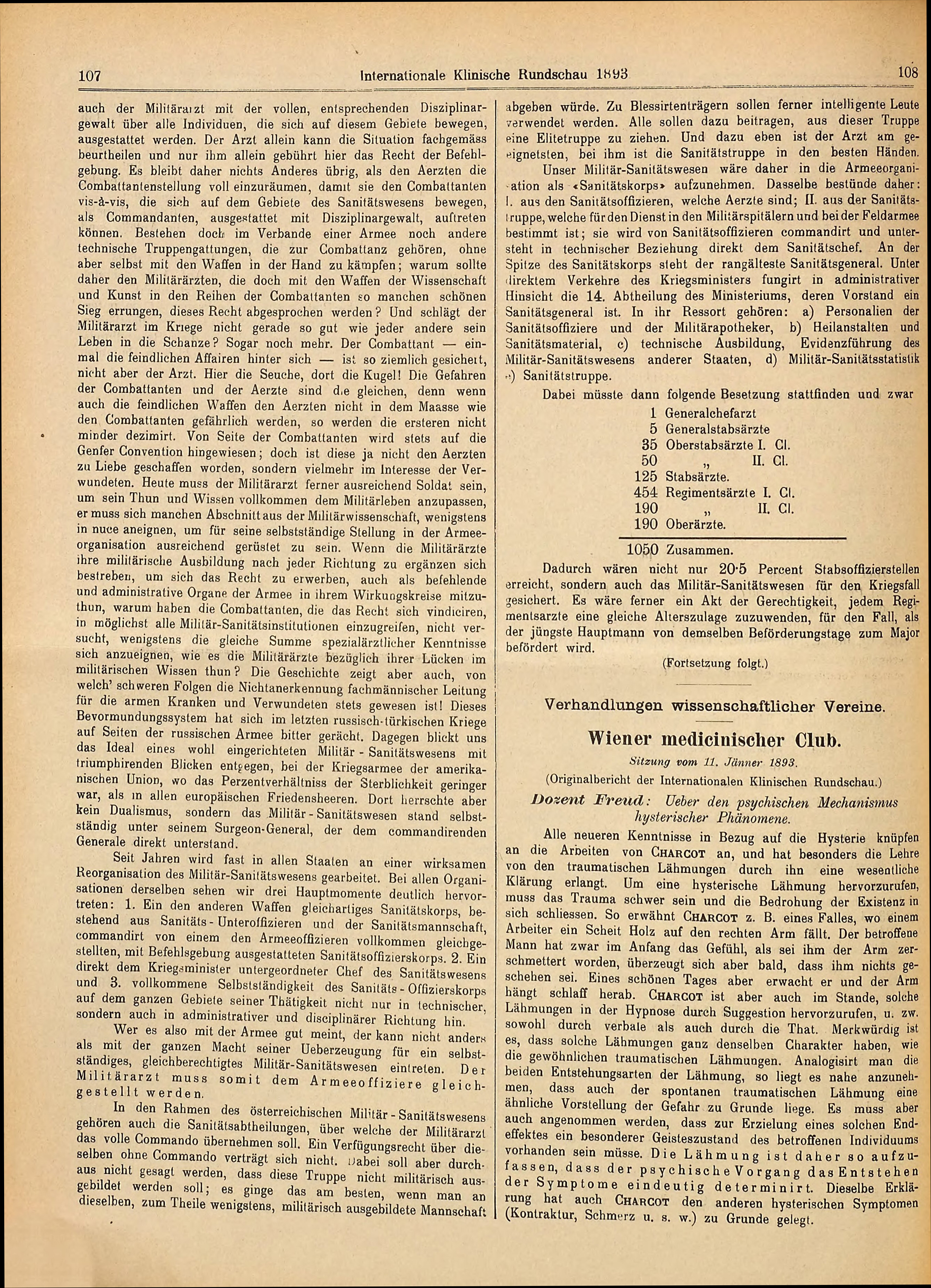 Dozent Freud: Ueber den psychischen Mechanismus hysterischer Phänomene.