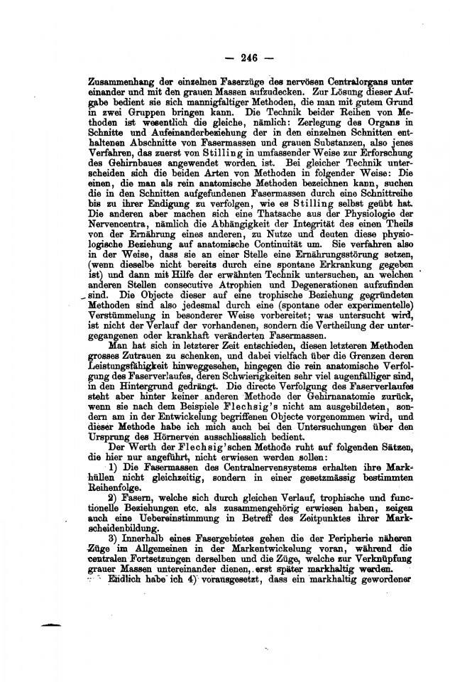 Faserzug die Markscheiden gleichzeitig oder ungefähr gleichzeitig über die ganze Länge seiner Fasern entwickelt zeigt, so dass das Verschwinden eines markhaltigen Faserzuges aus dem Bilde auf eine Unterbrechung seiner Fa- sern durch graue Substanz gedeutet werden darf.