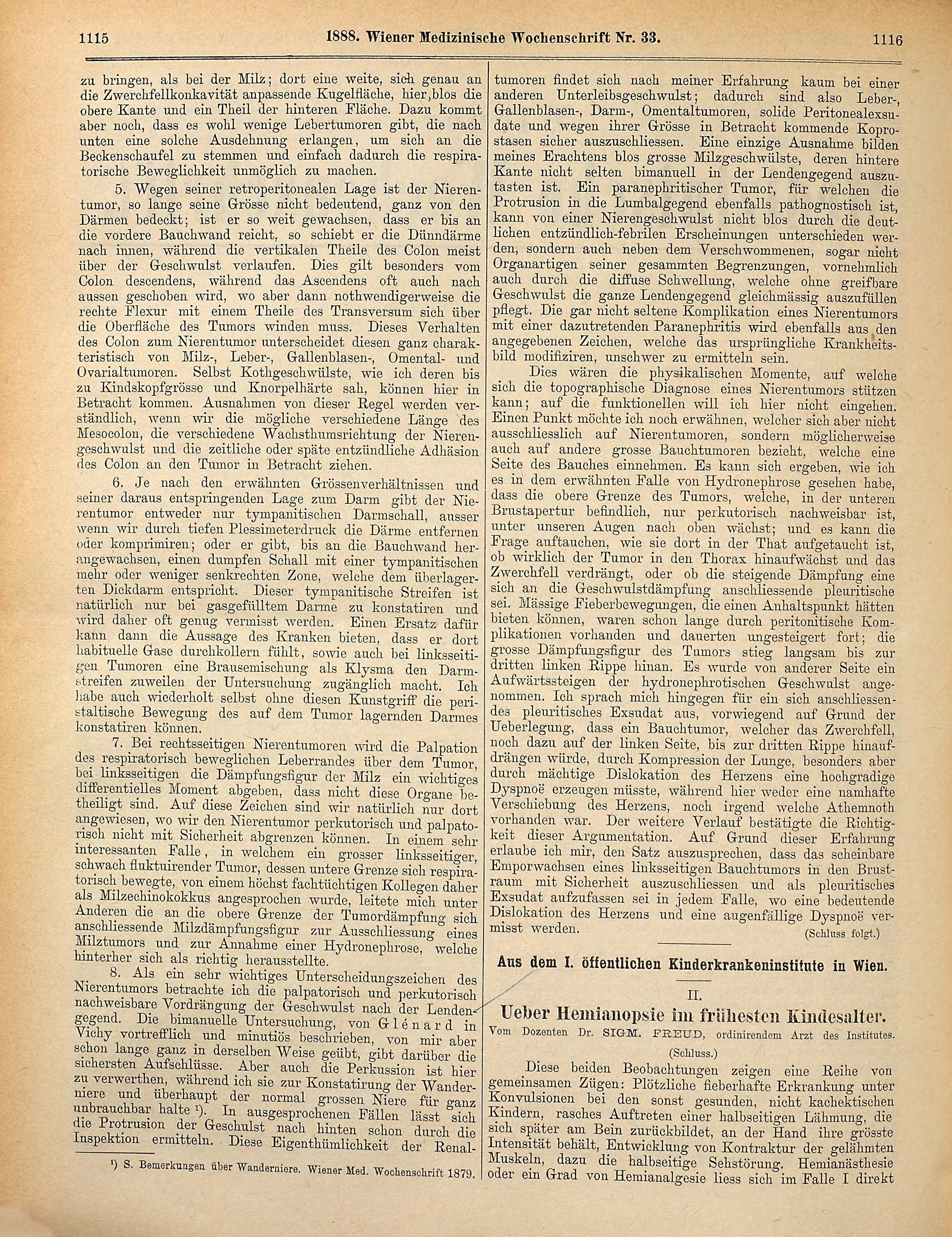 Vom Docenten Dr. SIGM. FREUD, ordinirendem Arzt des Institutes.