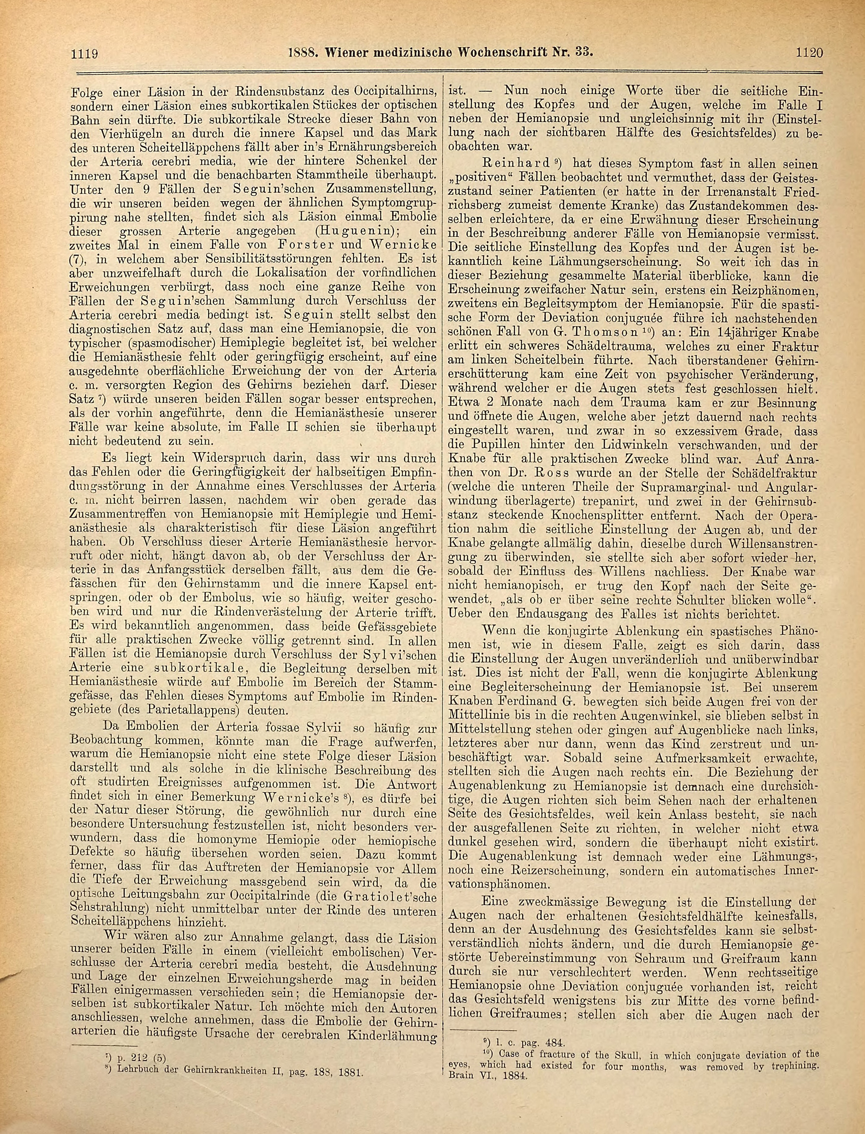 $^{7}$ ) Lehrbuch der Gehirnkrankheiten II, pag. 188. 1881.